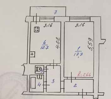 Жилая площадь 17.7 м2