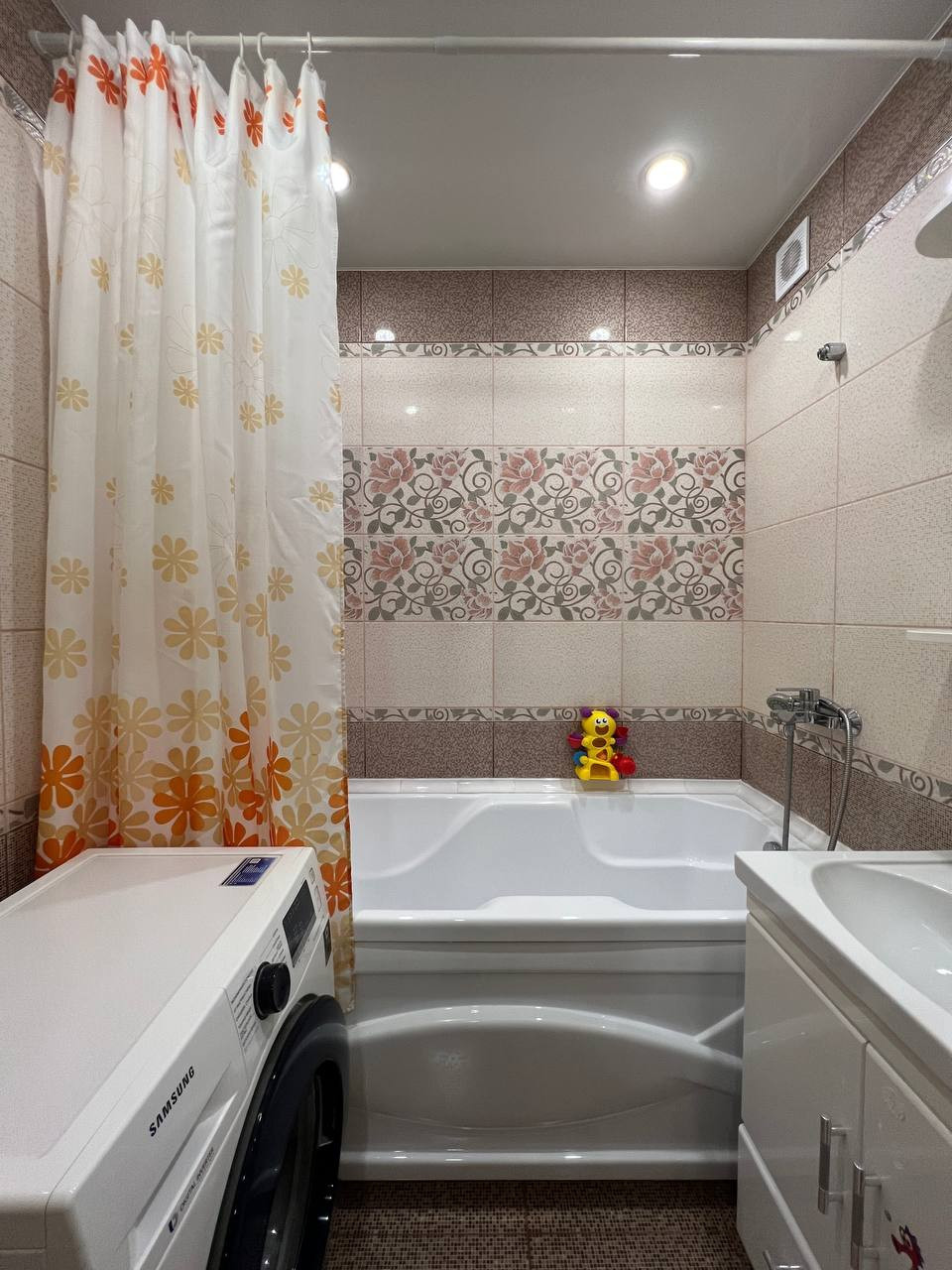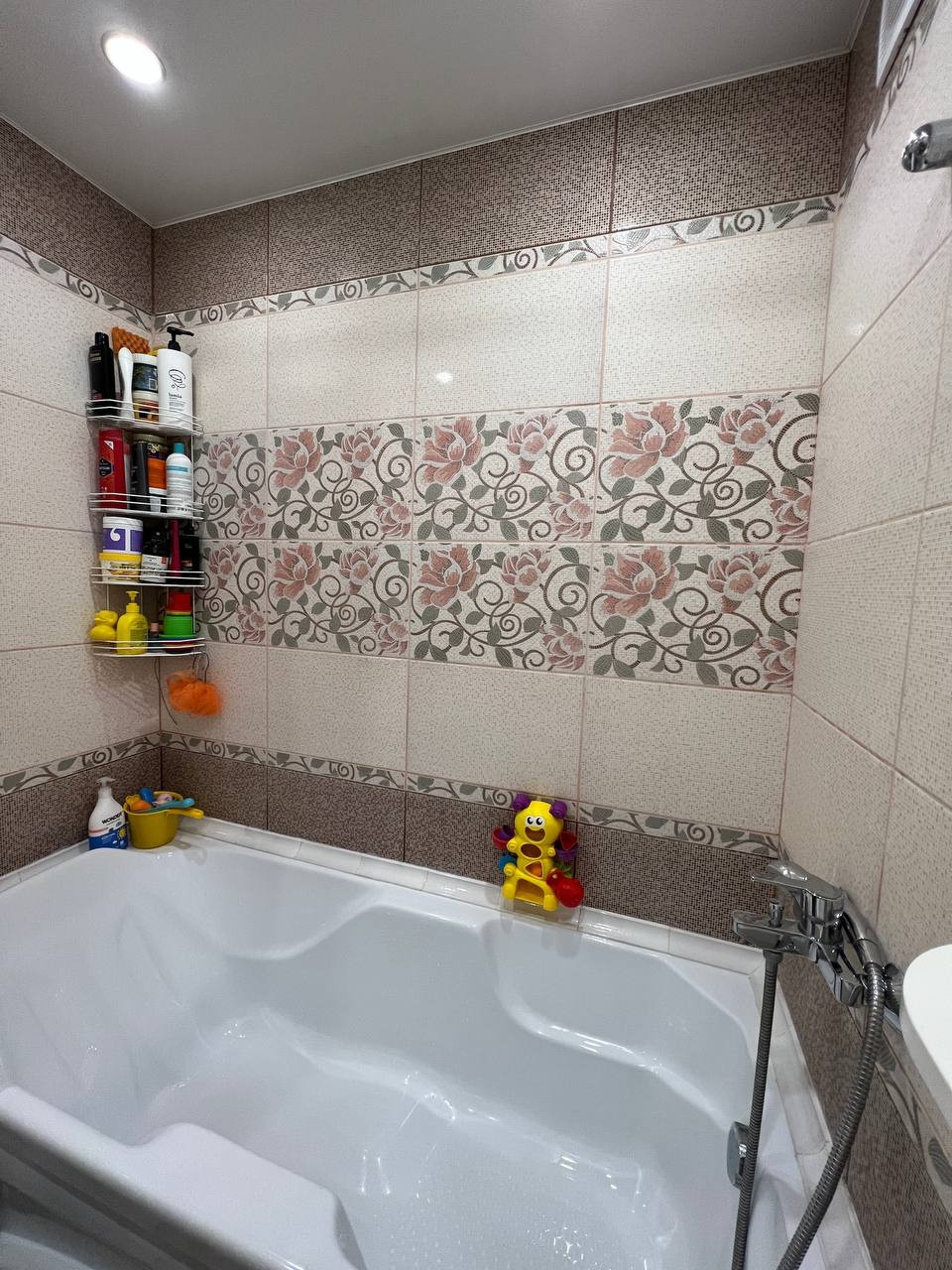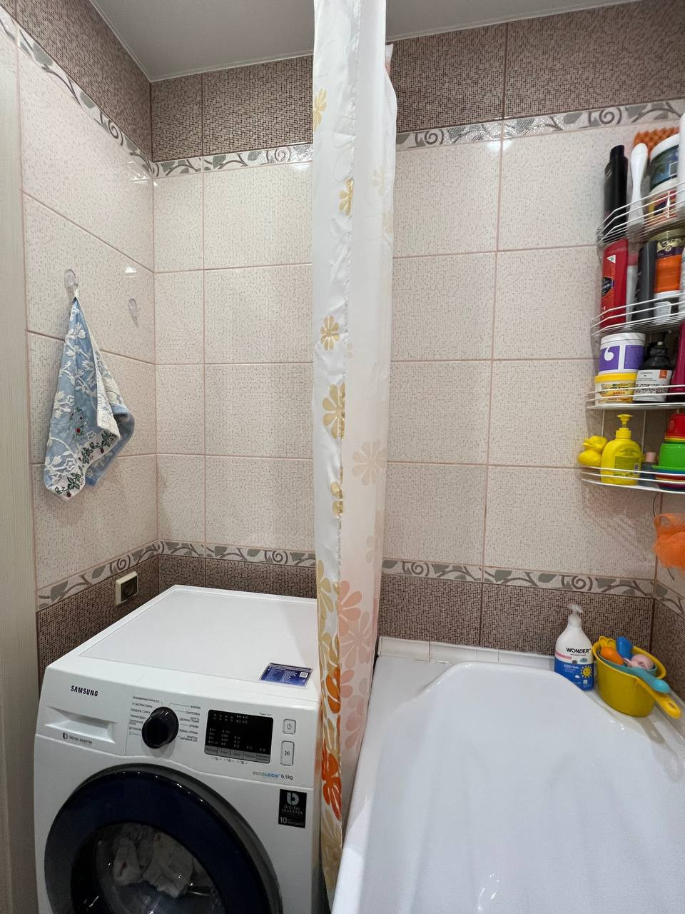 Санузел раздельный в кафеле,хорошая акриловая ванна нестандартного размера(она чуть больше и шире).
