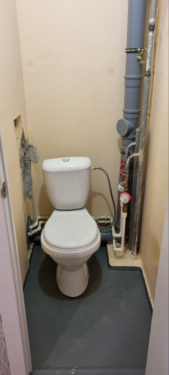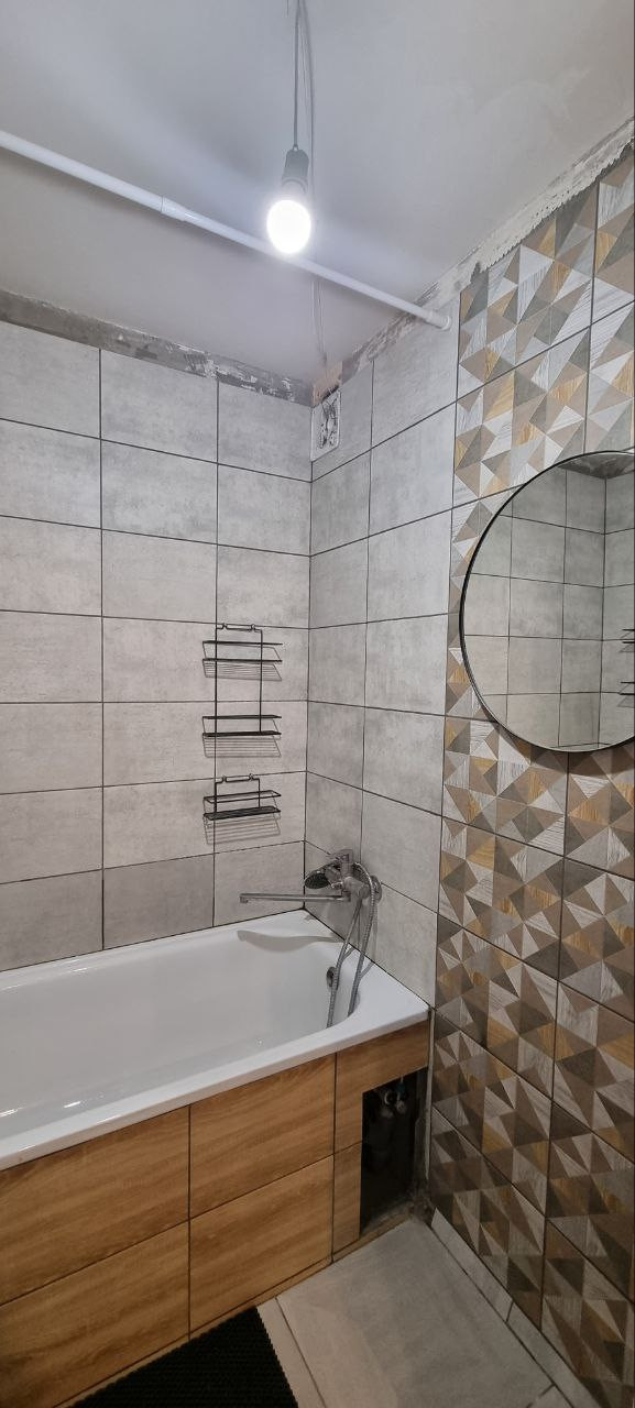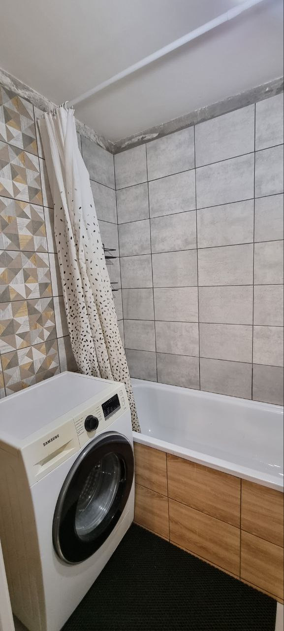 В ванной комнате почти доделан ремонт, остаётся только натянуть потолок, можем оставить стиральную машинку Samsung на 6 кг . В туалете ремонт от застройщика, но кафель для укладки куплен, остается в подарок.