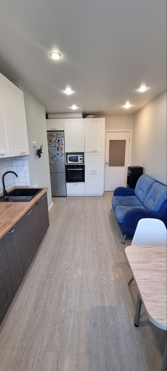 Кухня: дорогой гарнитур, стол со стульями, диванчик, индукционная плита Gorenje и духовой шкаф Bosh, микроволновка LG и холодильник Bosh. Вся техника без повреждений, ремонтов, в идеальном состоянии.