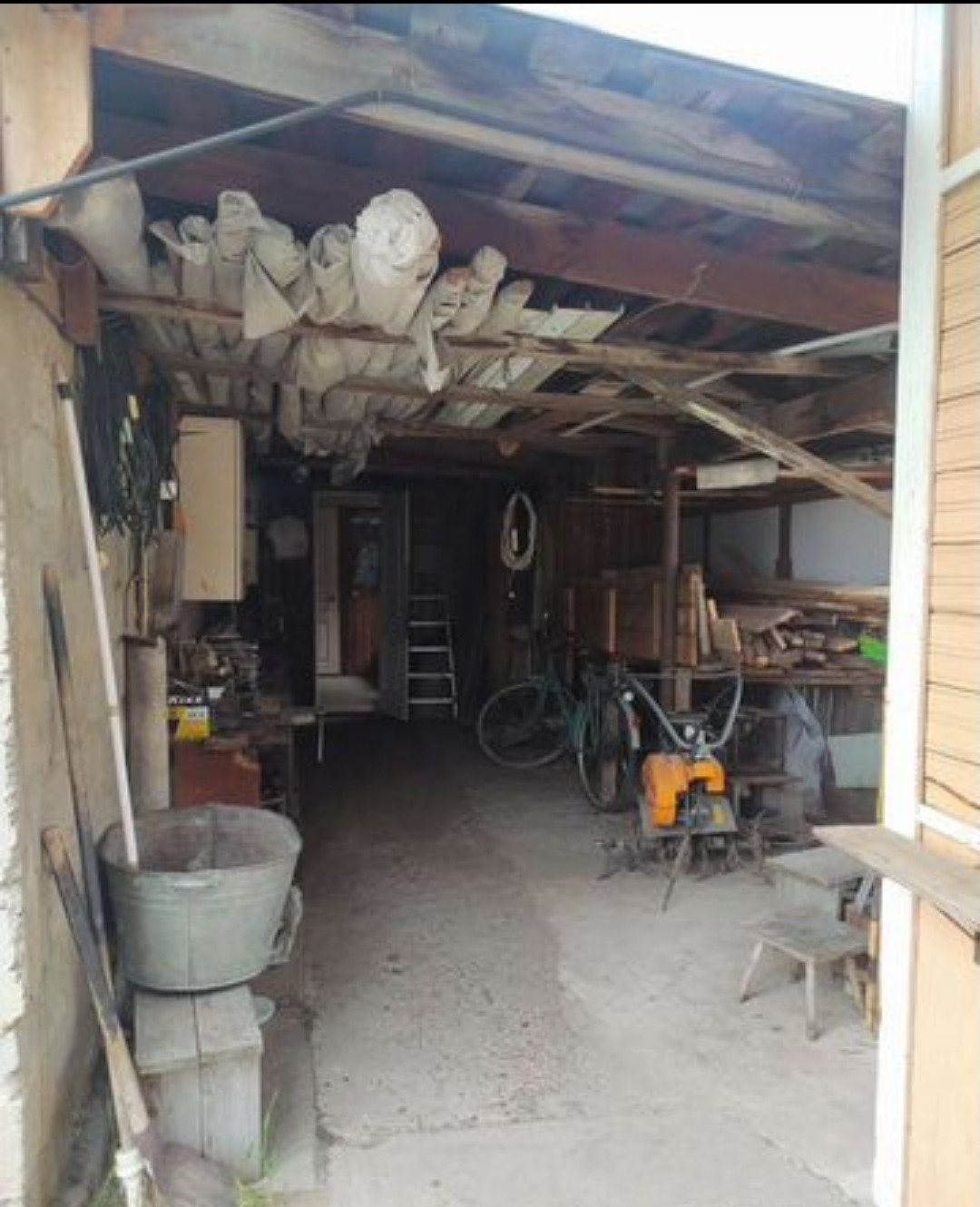 Имеется- гараж из бетона блоков, погреб.