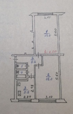 Высота потолков 2.5 м