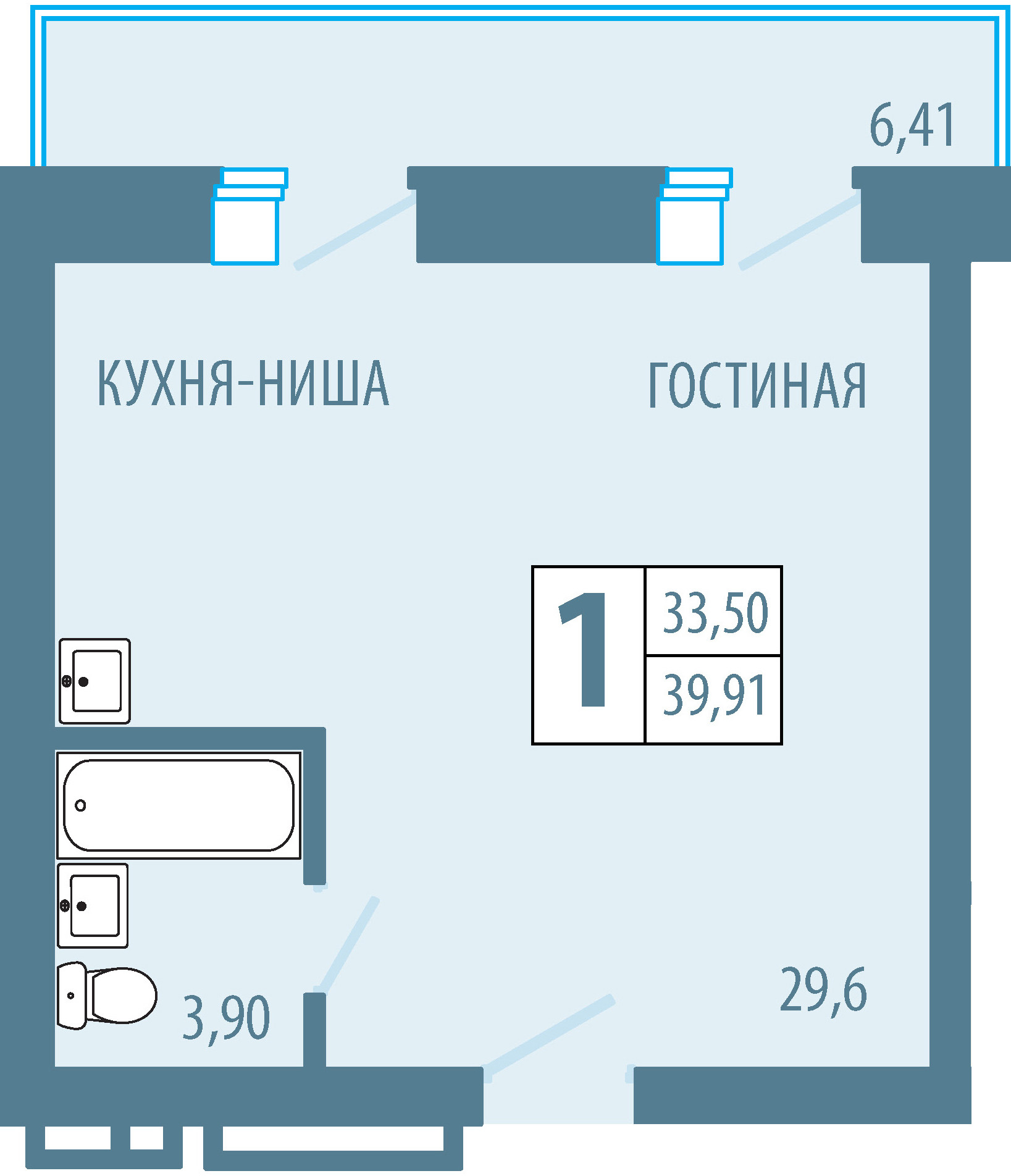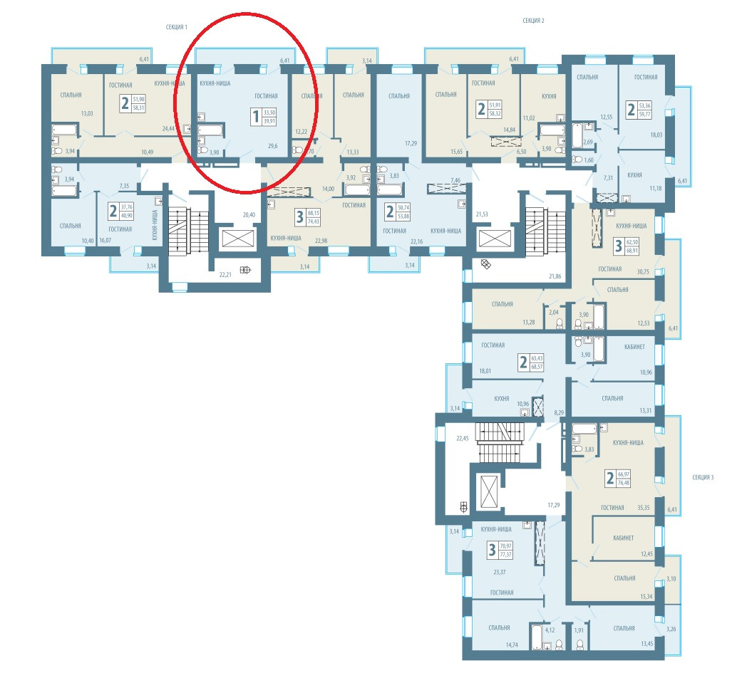 Общая площадь 39.9 м2