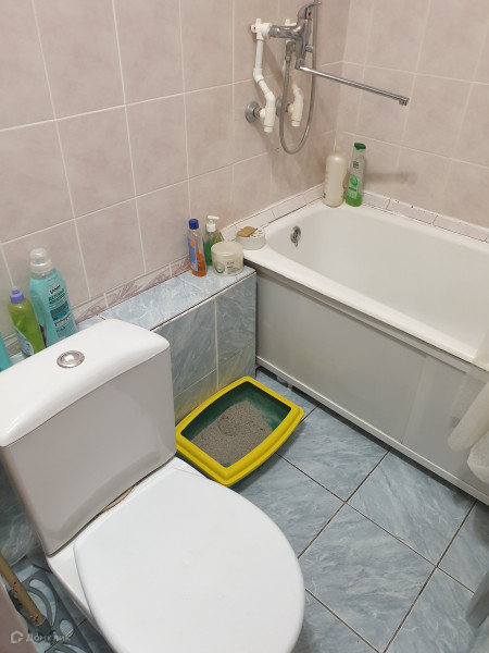 Санузел облицован кафелем, стоит новая сантехника. Балкон застеклен.