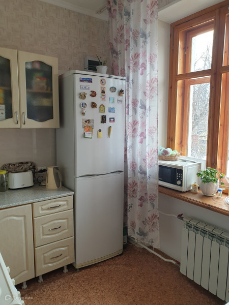 Дом расположен внутри квартала, окна выходят во двор. В квартире остается кухонный гарнитур, шкаф купе, холодильник.