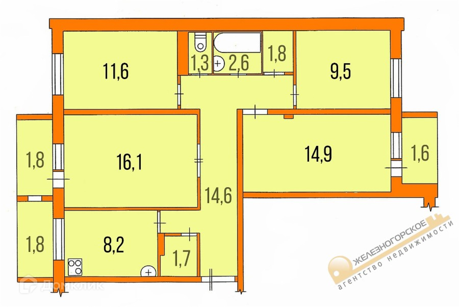 4-комнатная квартира, 87.5 м2, этаж 3 / 6, на продажу в Железногорске, улица Толстого, 3