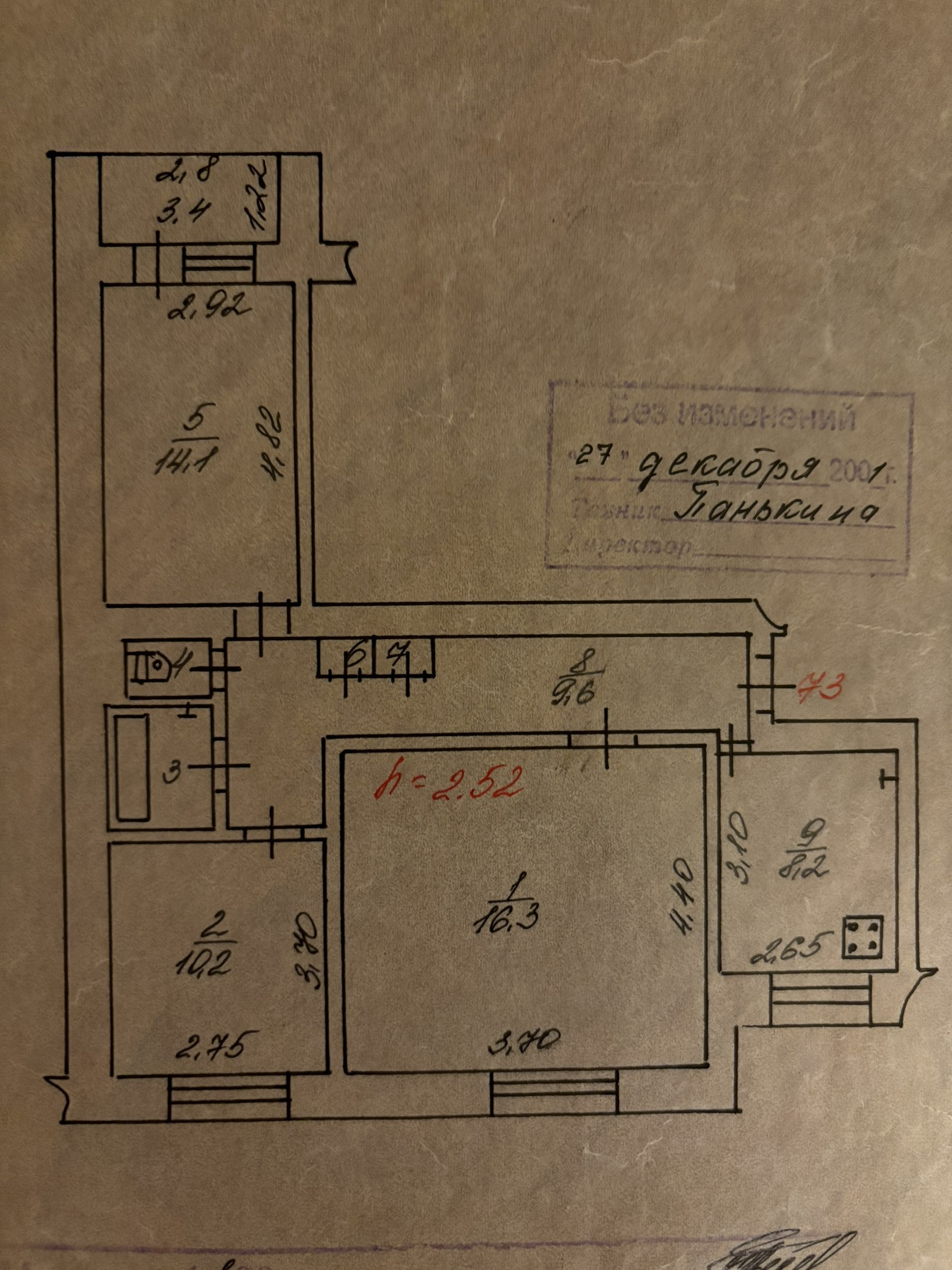 Высота потолков 2.52 м