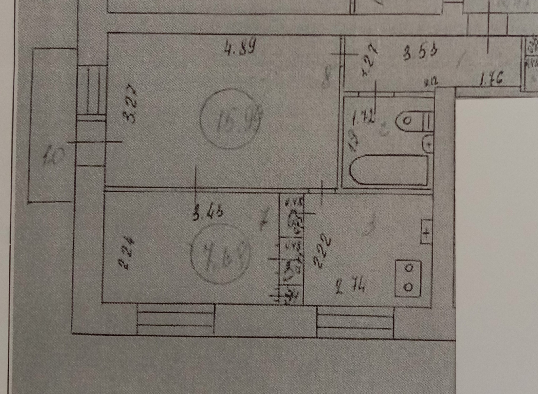 Жилая площадь 23.7 м2