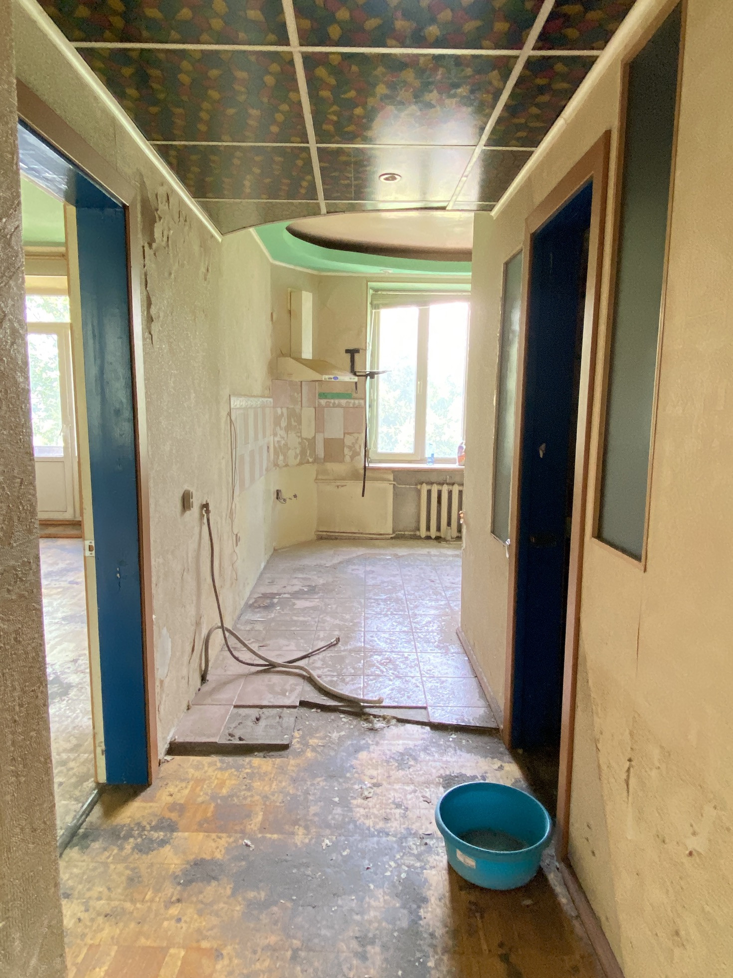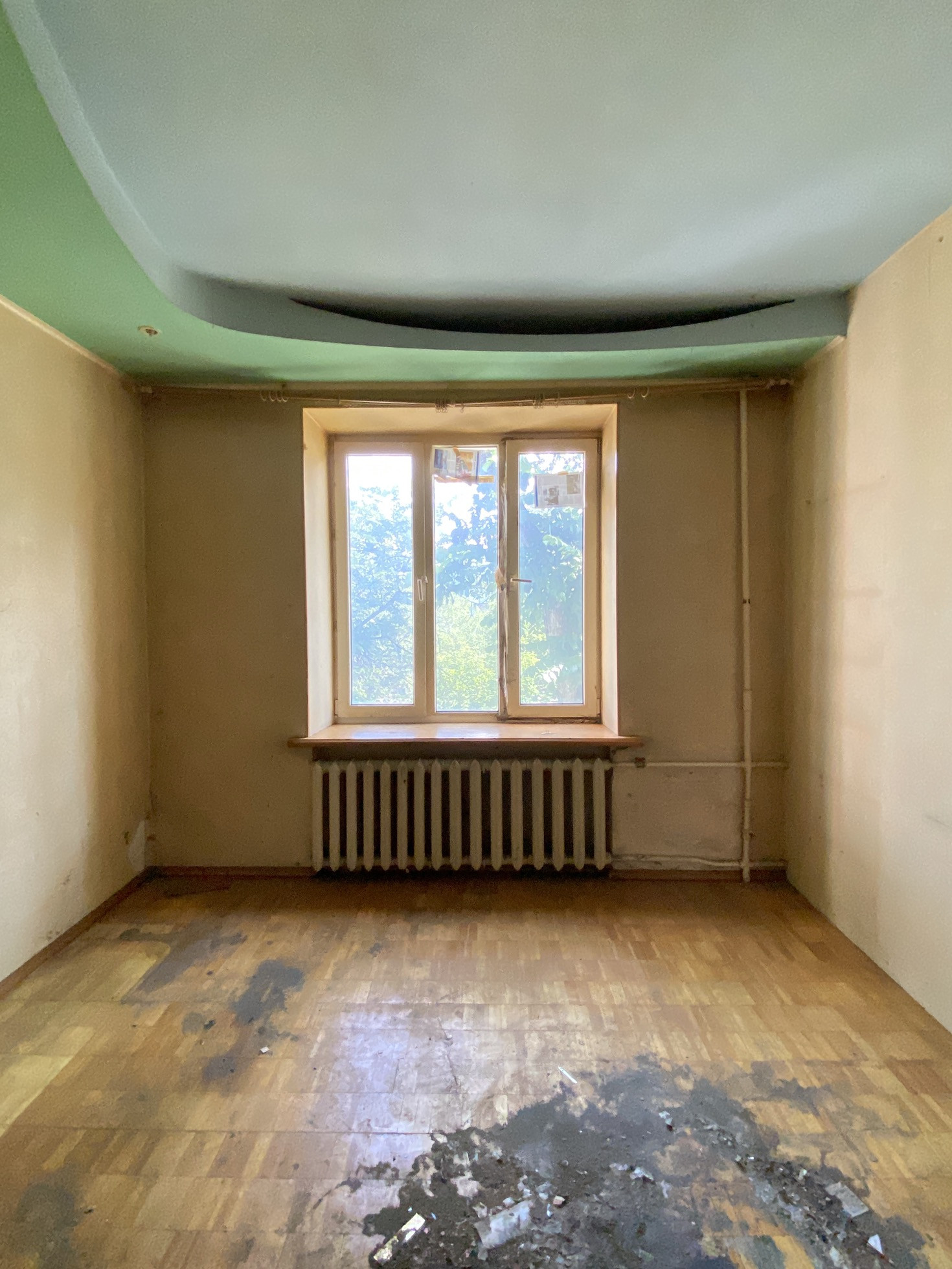 В квартире установлены окна пвх, дверь, трубы.