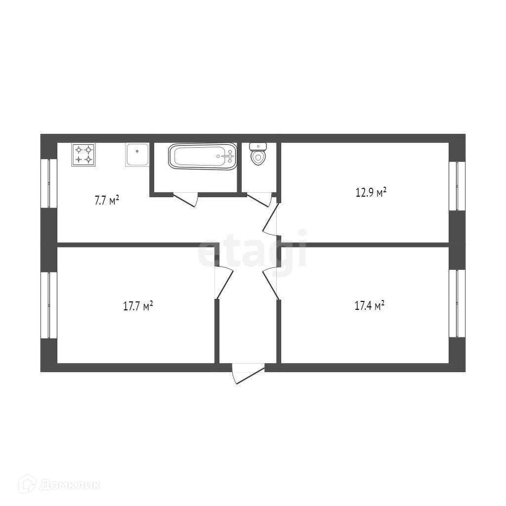 3-комнатная квартира, 74.2 м2, этаж 1 / 4, на продажу в Железногорске, улица Советской Армии, 25