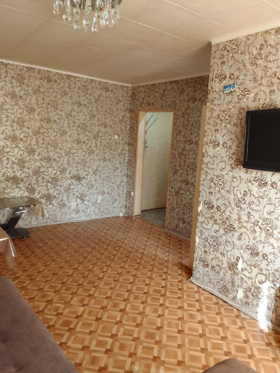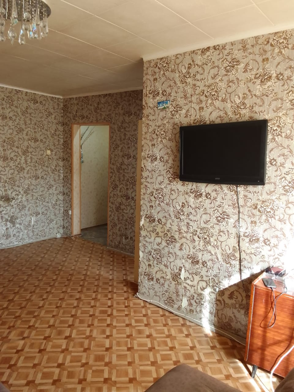 Квартира очень тёплая,общей площадью 46 кв м ,кухня 6 кв м ,две смежные, но просторные комнаты,совмещённый санузел.
