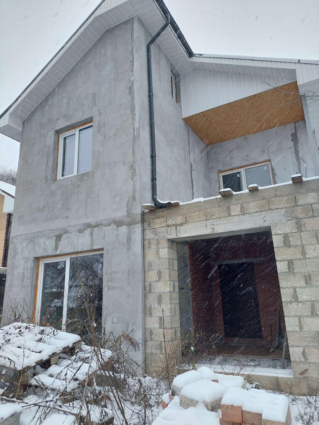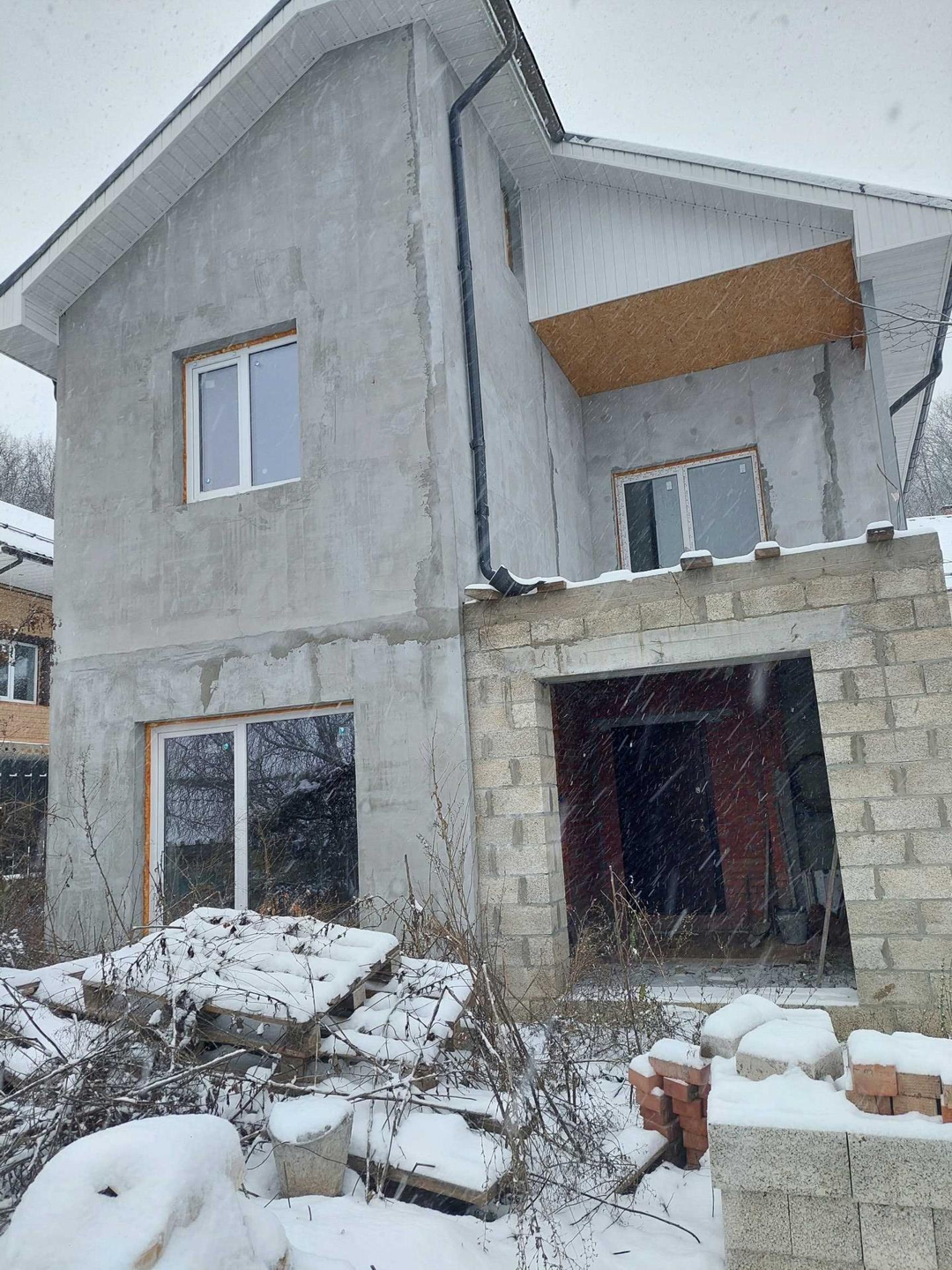 продается дом, газ, свет, вода, фундамент под забор, черновой, осталась только отделка, 3 комнаты, балкон. Прекрасное место, рядом лес. Торг. На участке есть старый дом, можно в нем жить и заниматься отделкой.