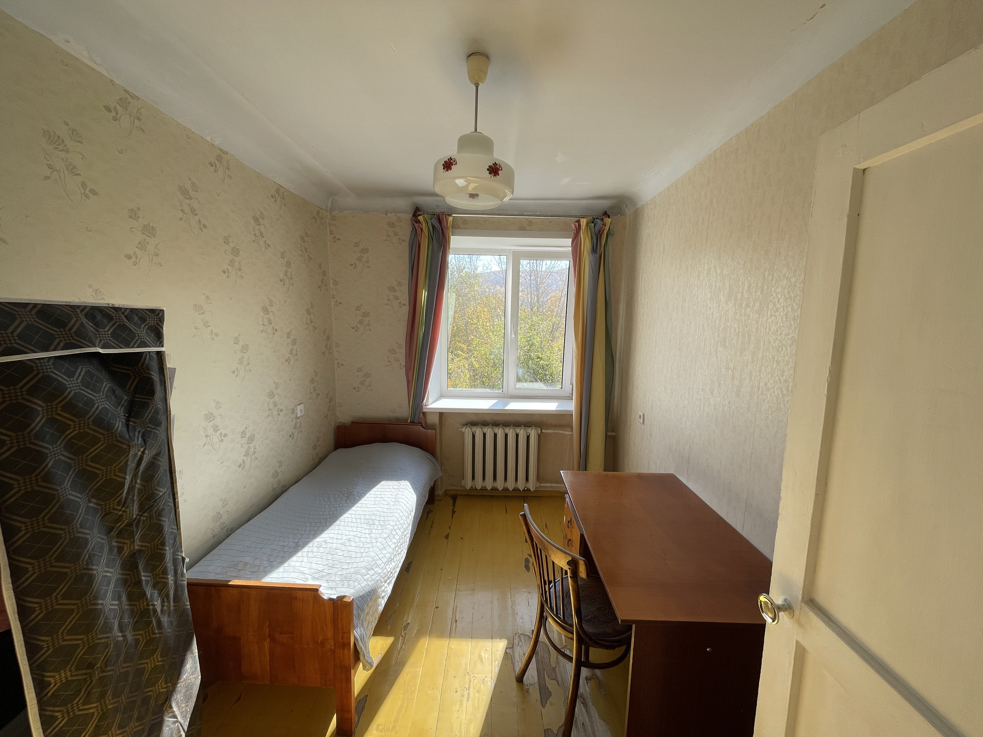 Балкон застекленный, но деревянная основа, не пластиковая. Зимой на нем прекрасно сушить белье, летом — провожать закаты.