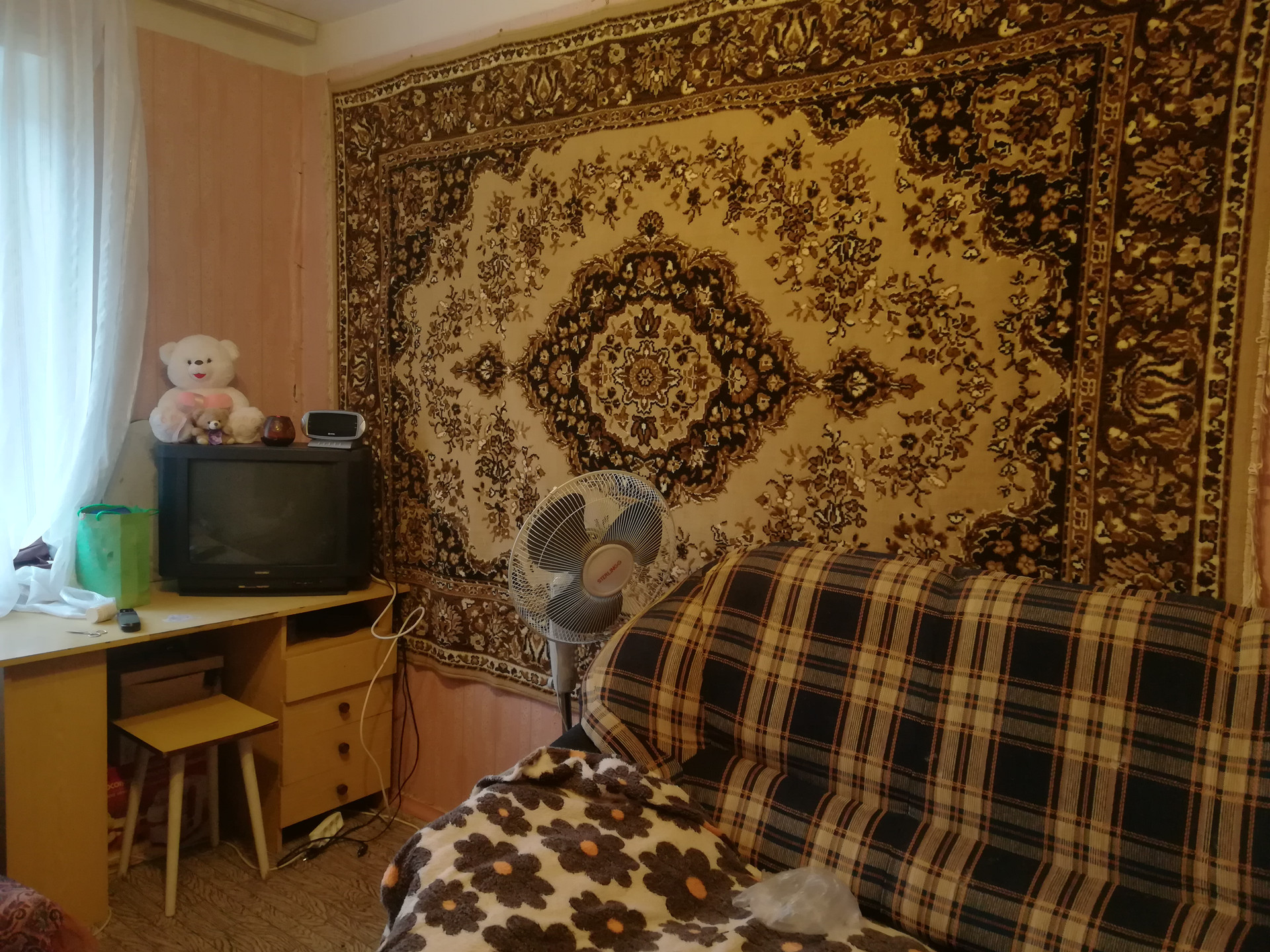 Раздельные комнаты 18 и 12 метров, на две стороны. Из окна на улицу открывается красивый вид на горы.