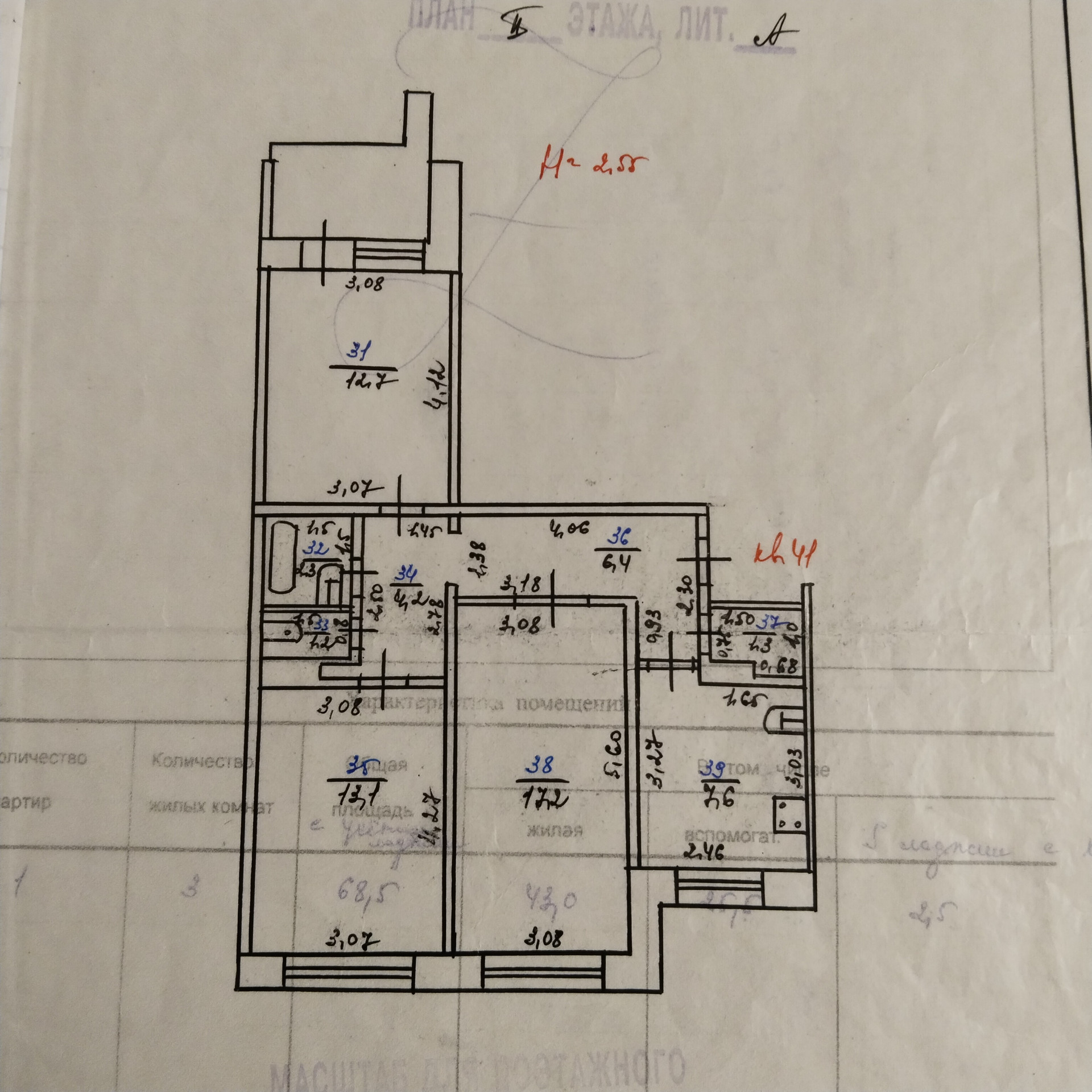 Жилая площадь 43 м2