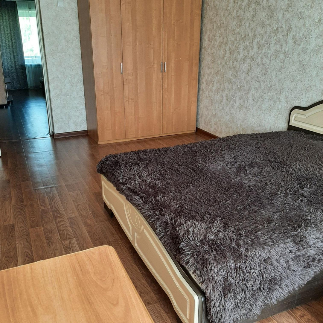Двухкомнатная квартира в экологически чистом районе города,  мебелированная. Кол-во спальных мест -4 (2спальная кровать в спальне и угловой диван в зале). Холодильник, стиральная машинка, телевизор. пластиковые окна. Газовая колонка. Комнаты-расположение самолёт. Санузел раздельный. Балкон.