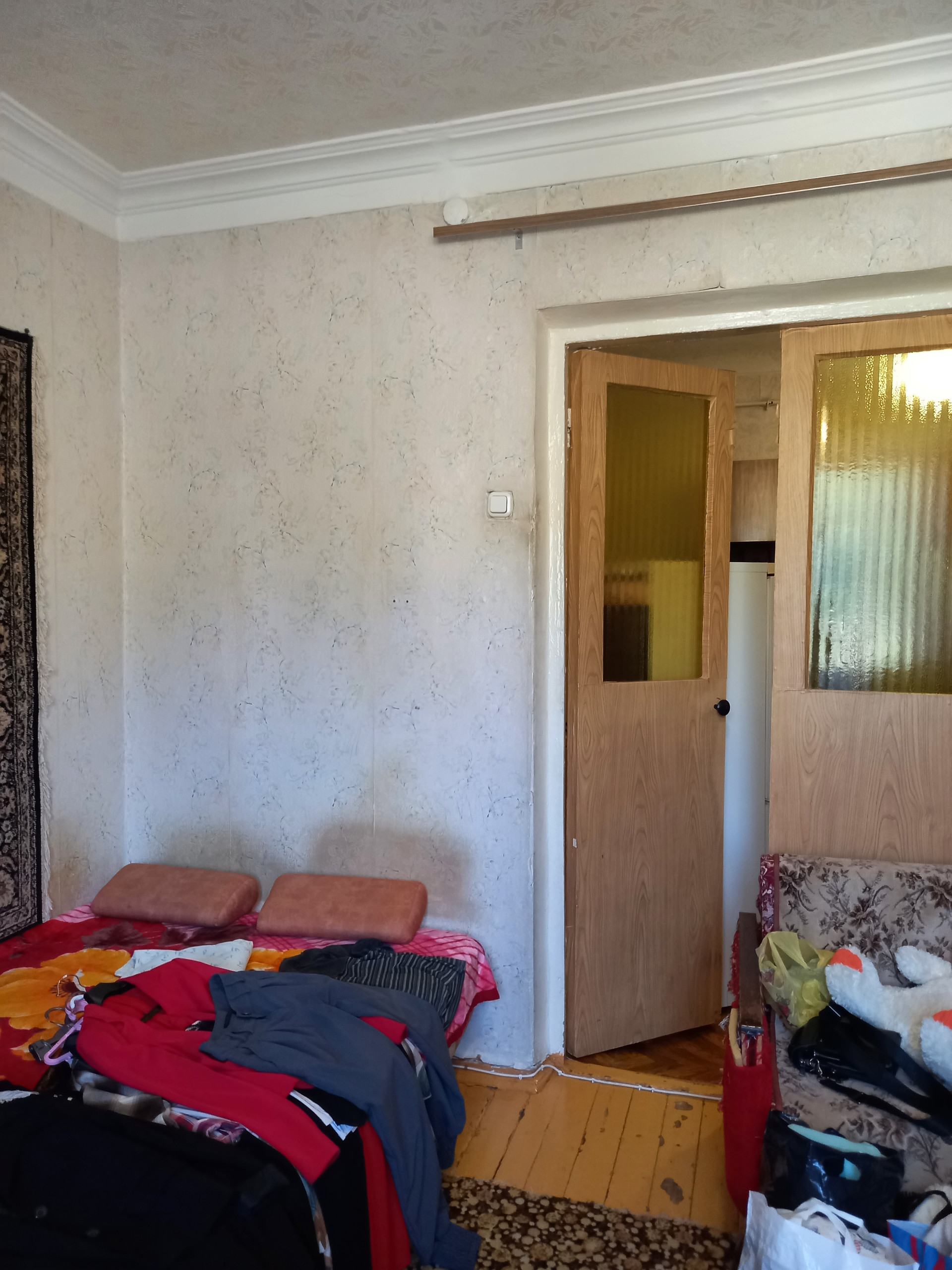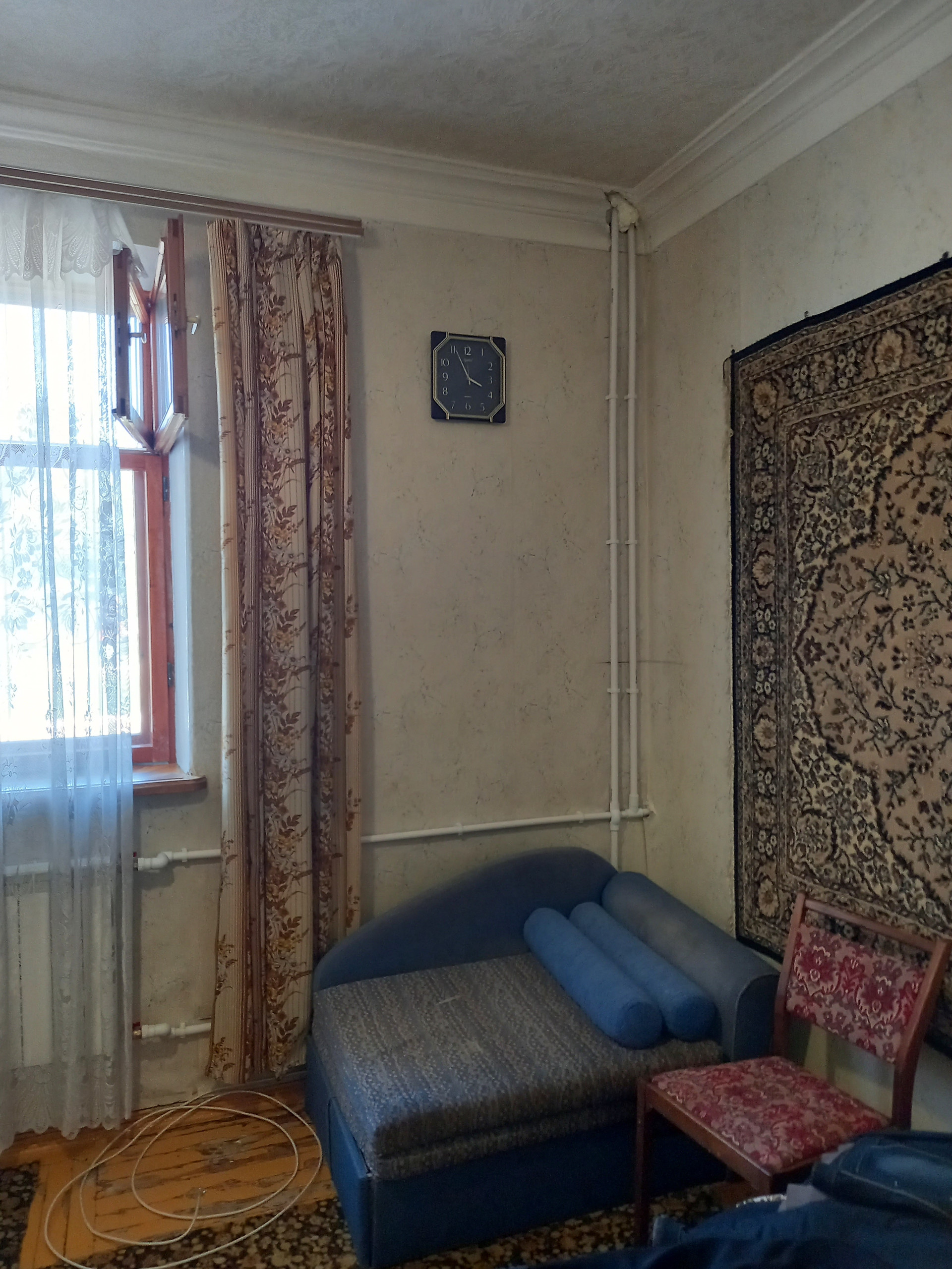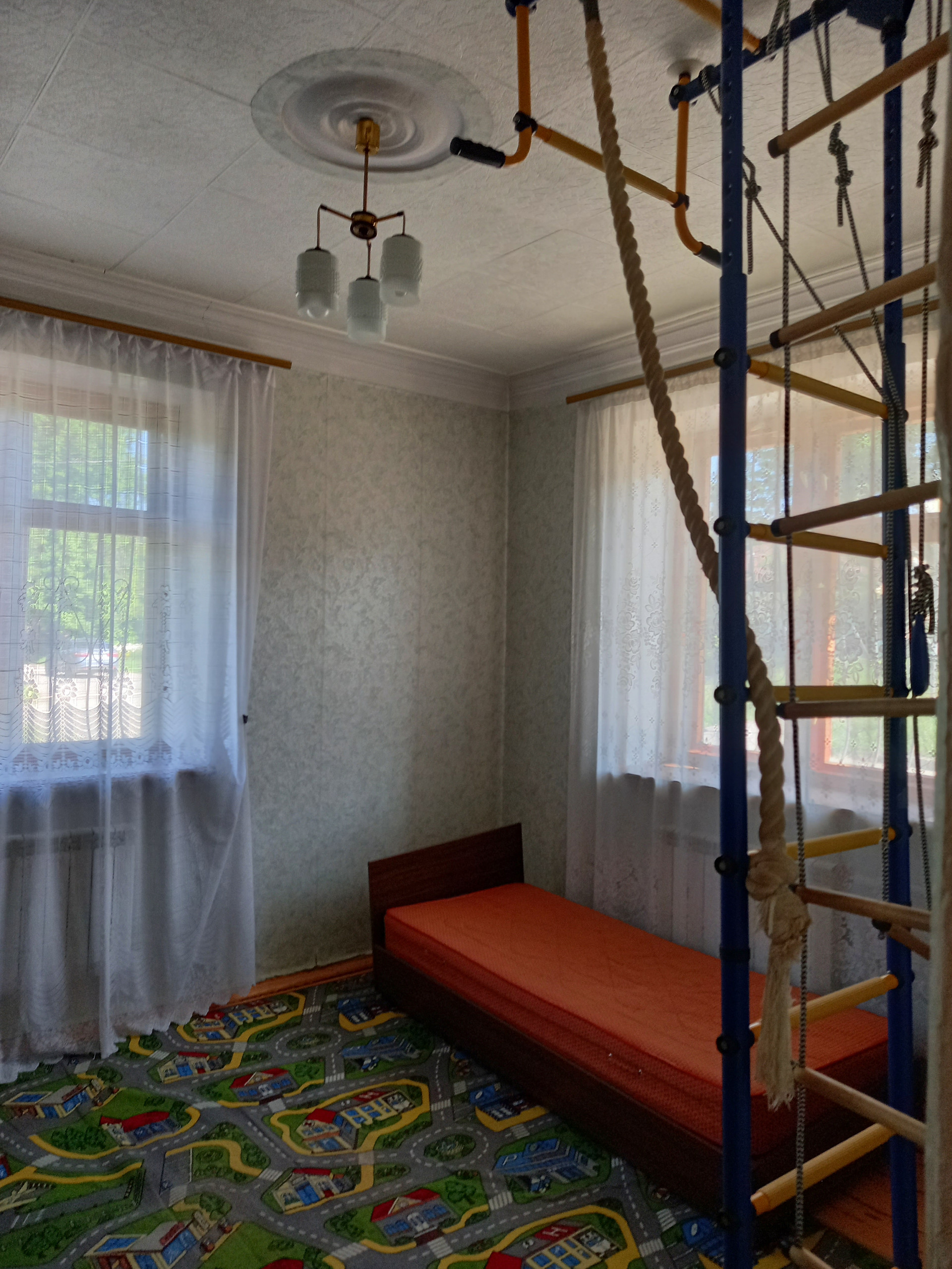 Мебель: прихожая, диван, дет. диван, спортивный уголок, два телевизора, кровать. Квартира без особого ремонта, чистая, жилая, без посторонних запахов. Батареи новые. В квартире очень тепло. Пол деревянный. В комнатах ковры. Остальное –линолеум. Пылесос, утюг, стиральная машина, микроволновка, холодильник, газовая плита. Письменный стол, кухонный стол.