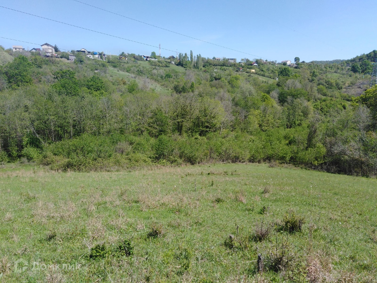 Участок ровный . Прекрасный вид на окрестности и море вдалеке .