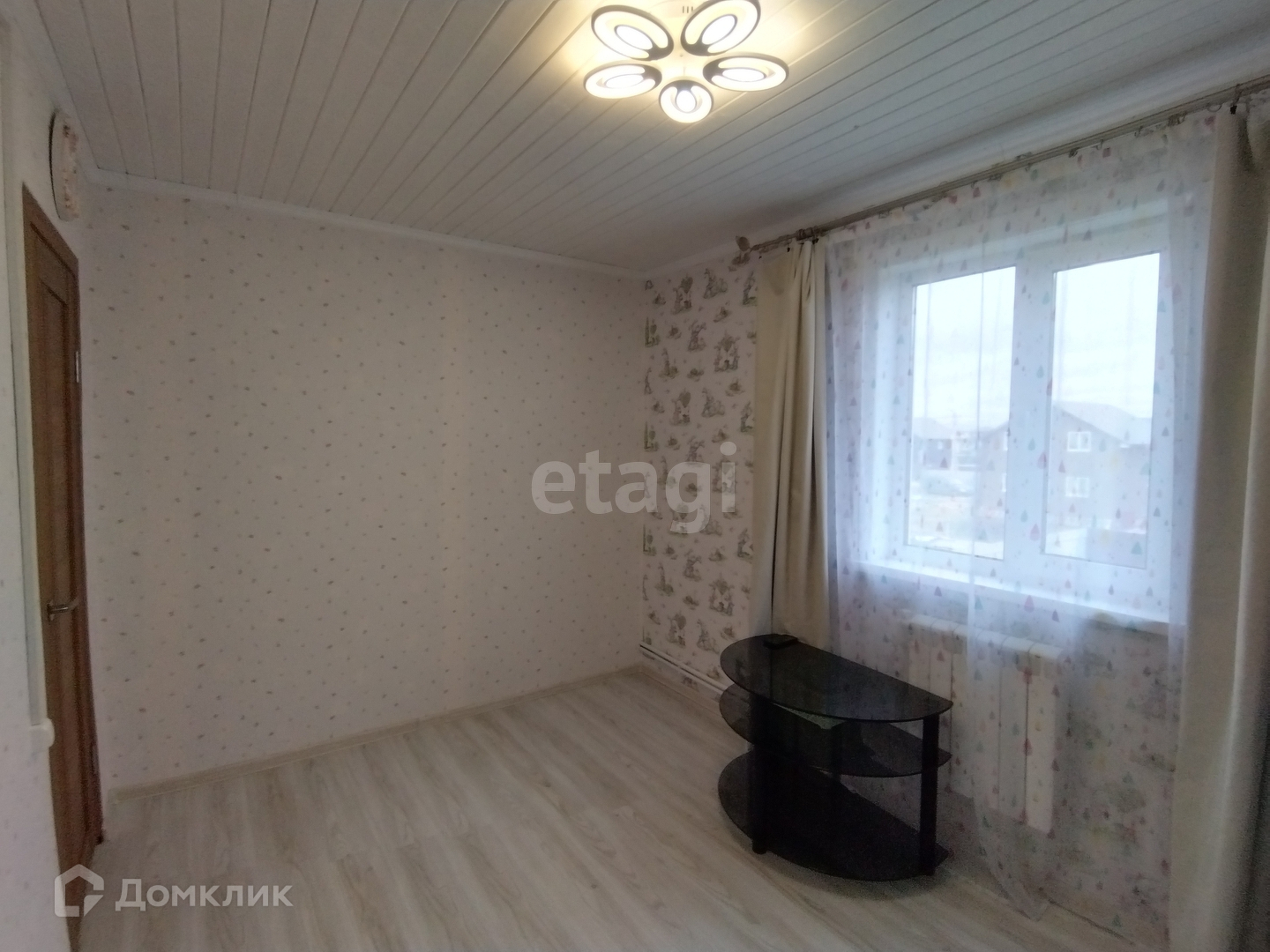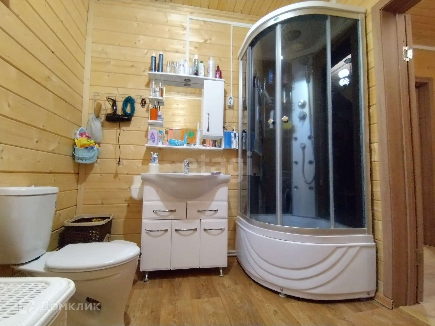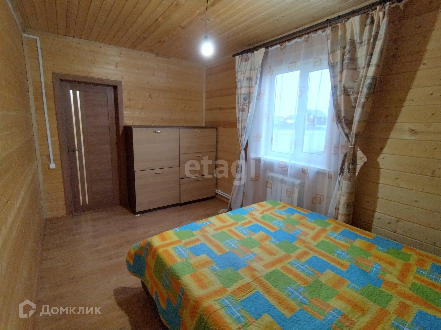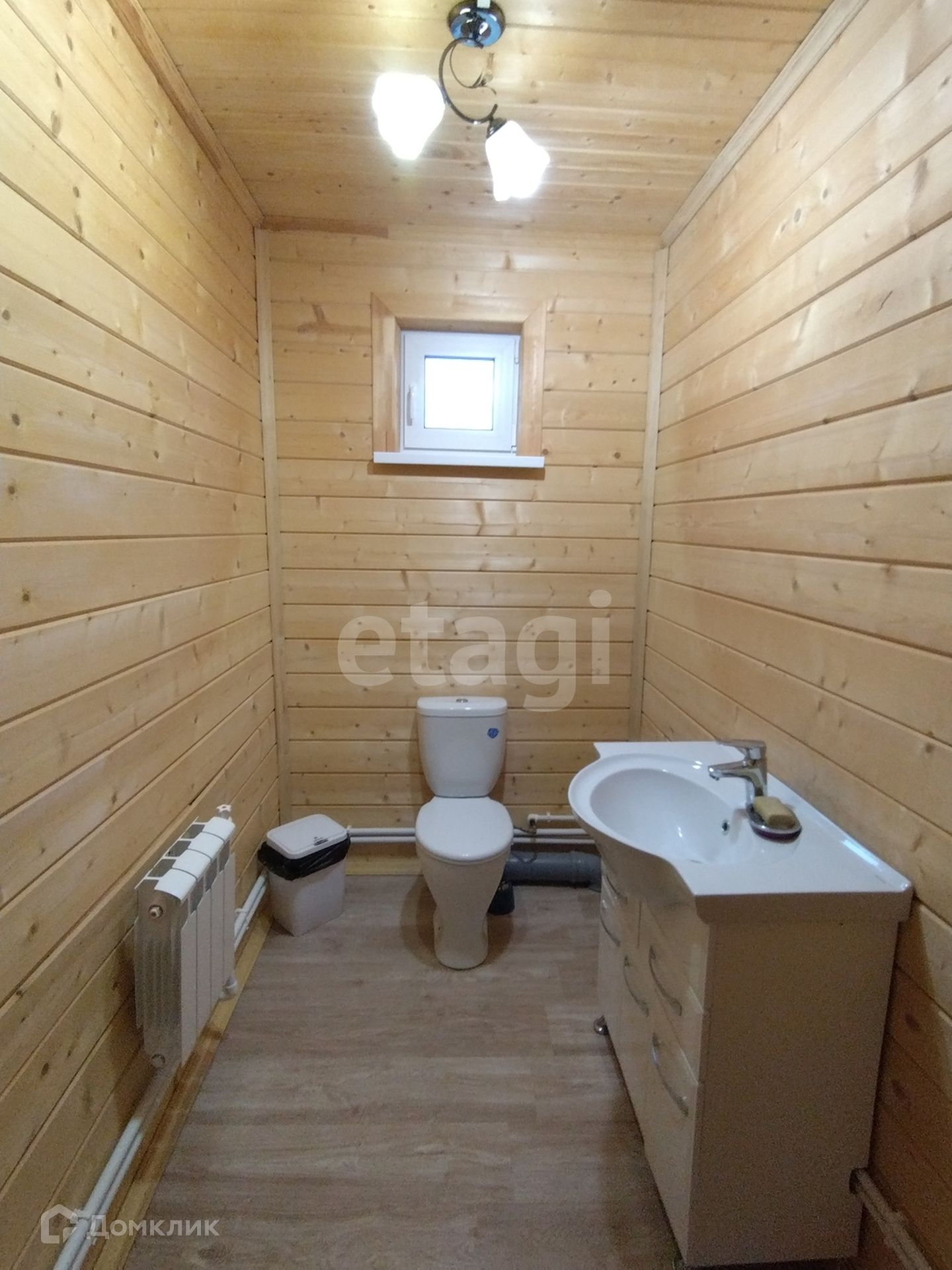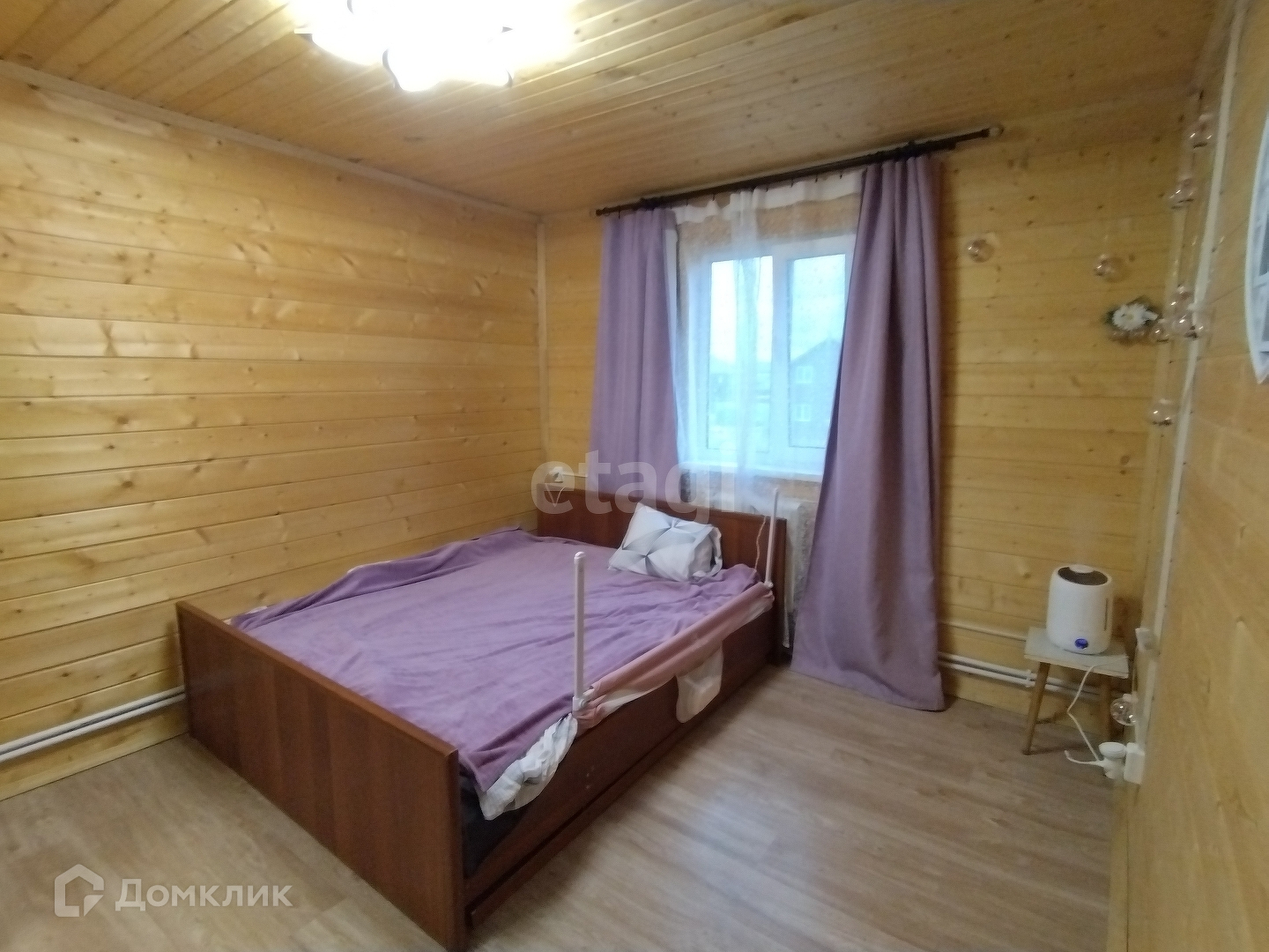 Внутренняя отделка стен – имитация бруса. Покрытие пола – ламинат.