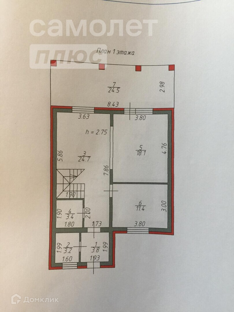 Высота потолков 2.8 м
