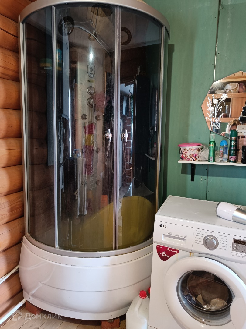 В доме в зоне душевой не покрывали бревно краской, что позволит Вам переоборудовать при желании помещение под парную.