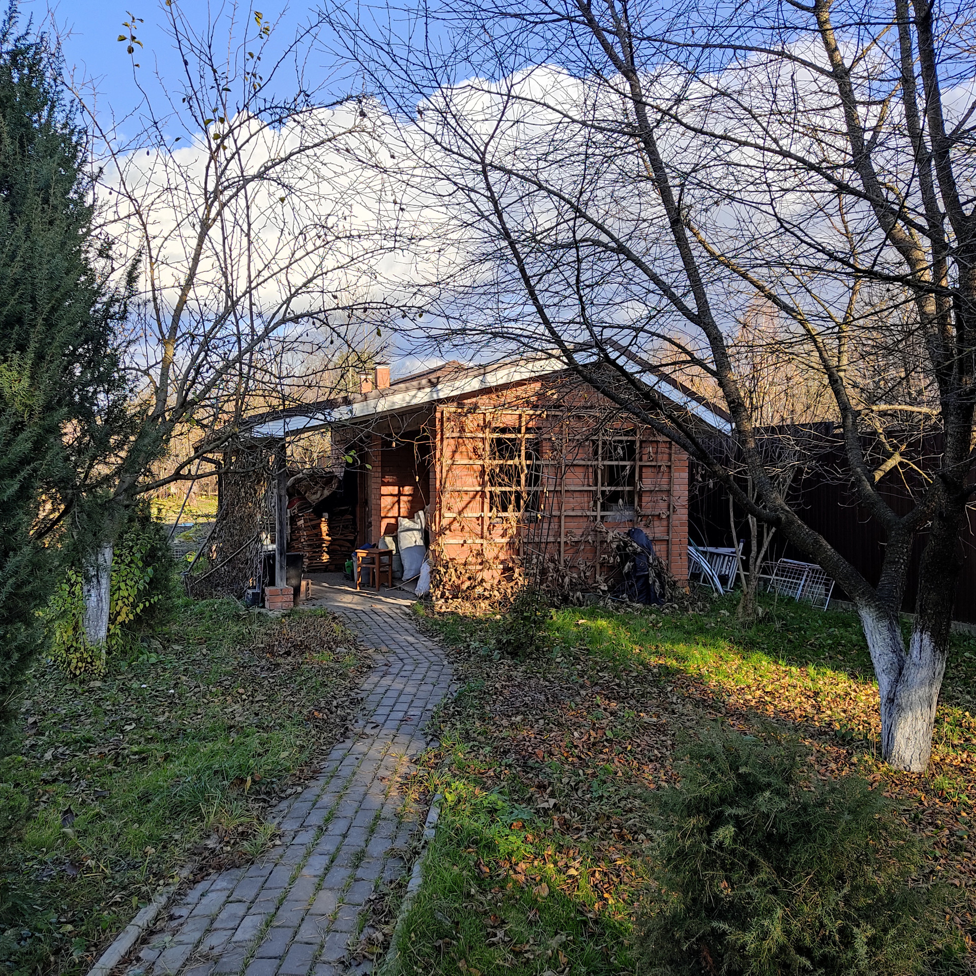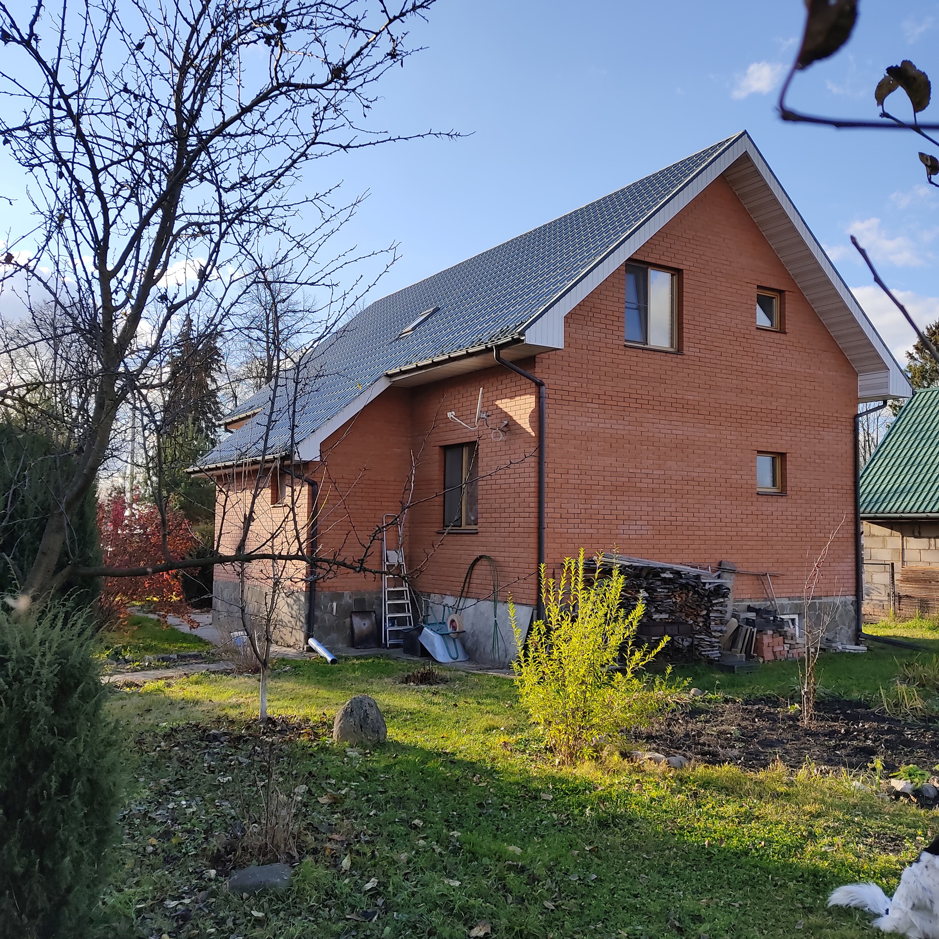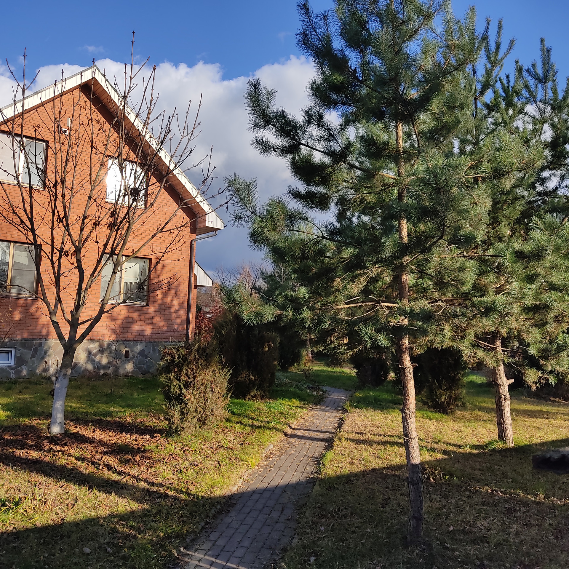Дом полностью кирпичный, просторный подвал и бойлерная, на участке разбит сад (груши яблони, сливы, вишня, черешня) имеется две теплицы, есть кирпичный сарай и летняя кухня