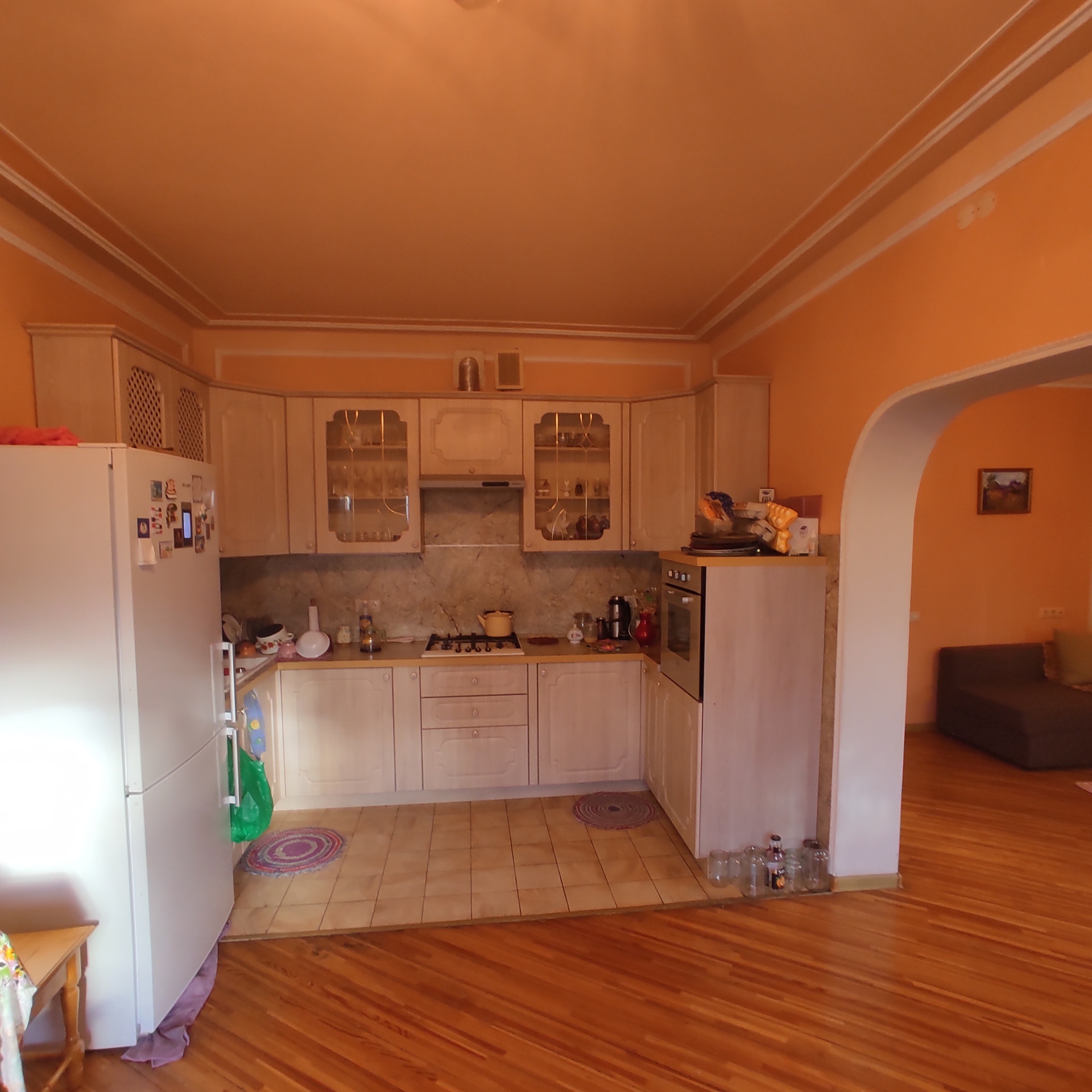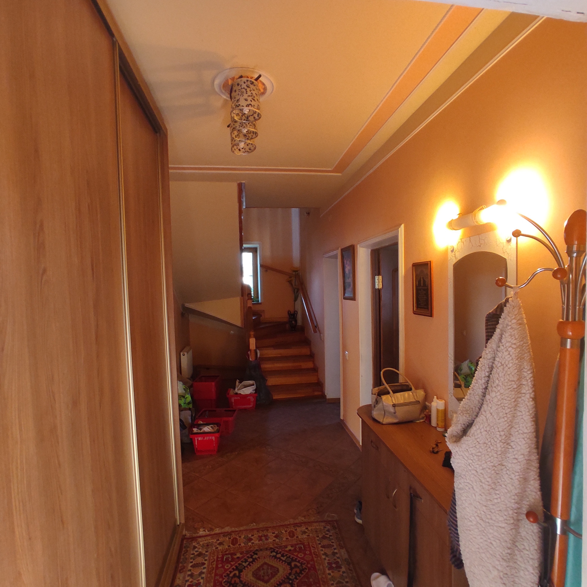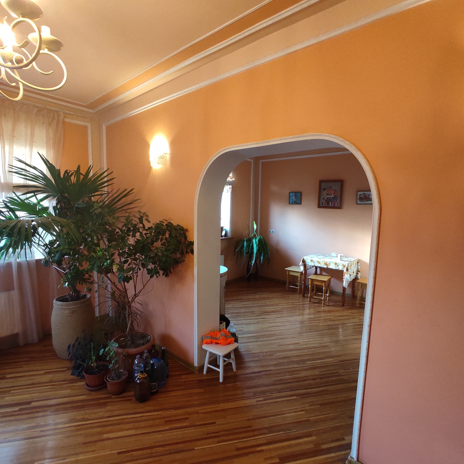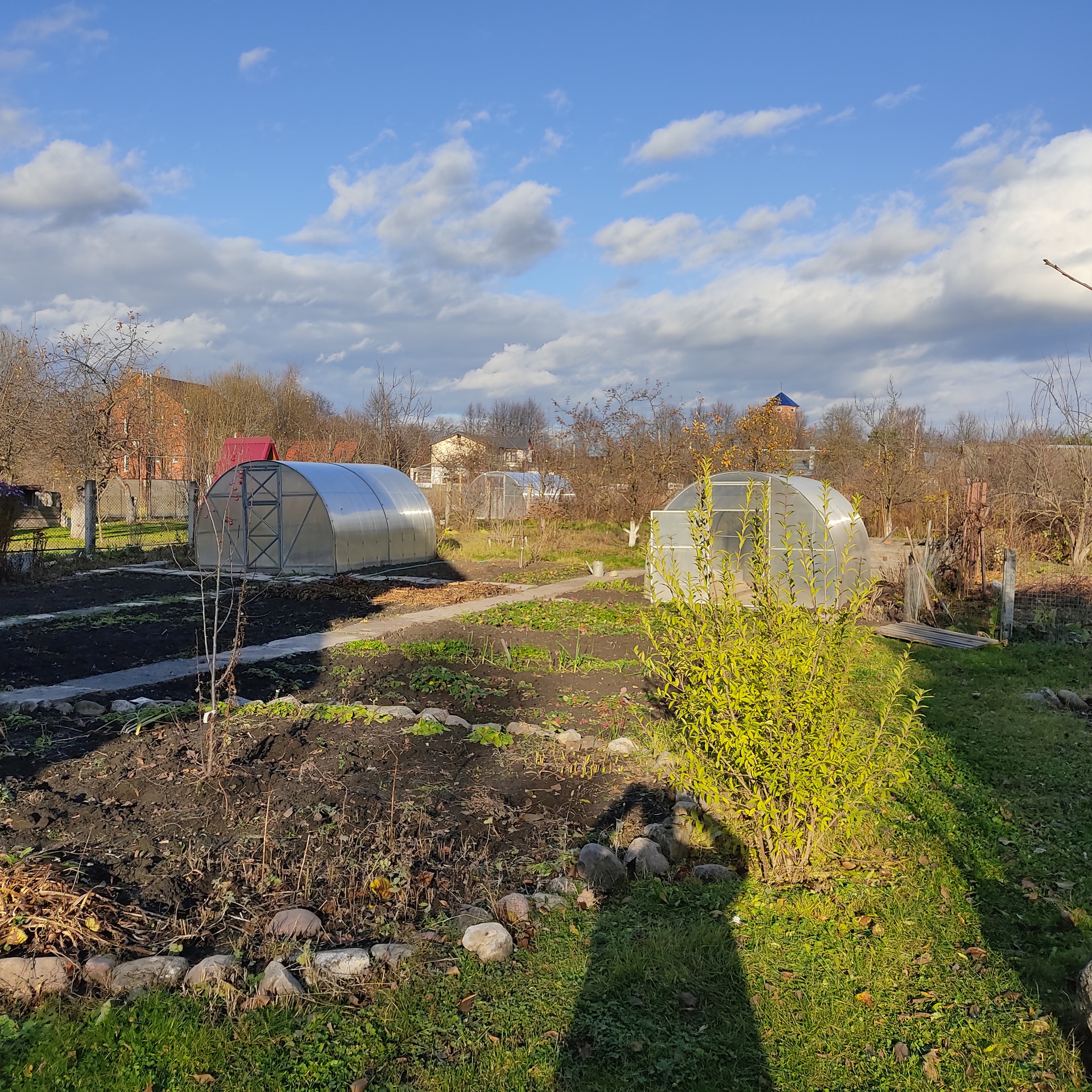 Дом полностью кирпичный, просторный подвал и бойлерная, на участке разбит сад (груши яблони, сливы, вишня, черешня) имеется две теплицы, есть кирпичный сарай и летняя кухня