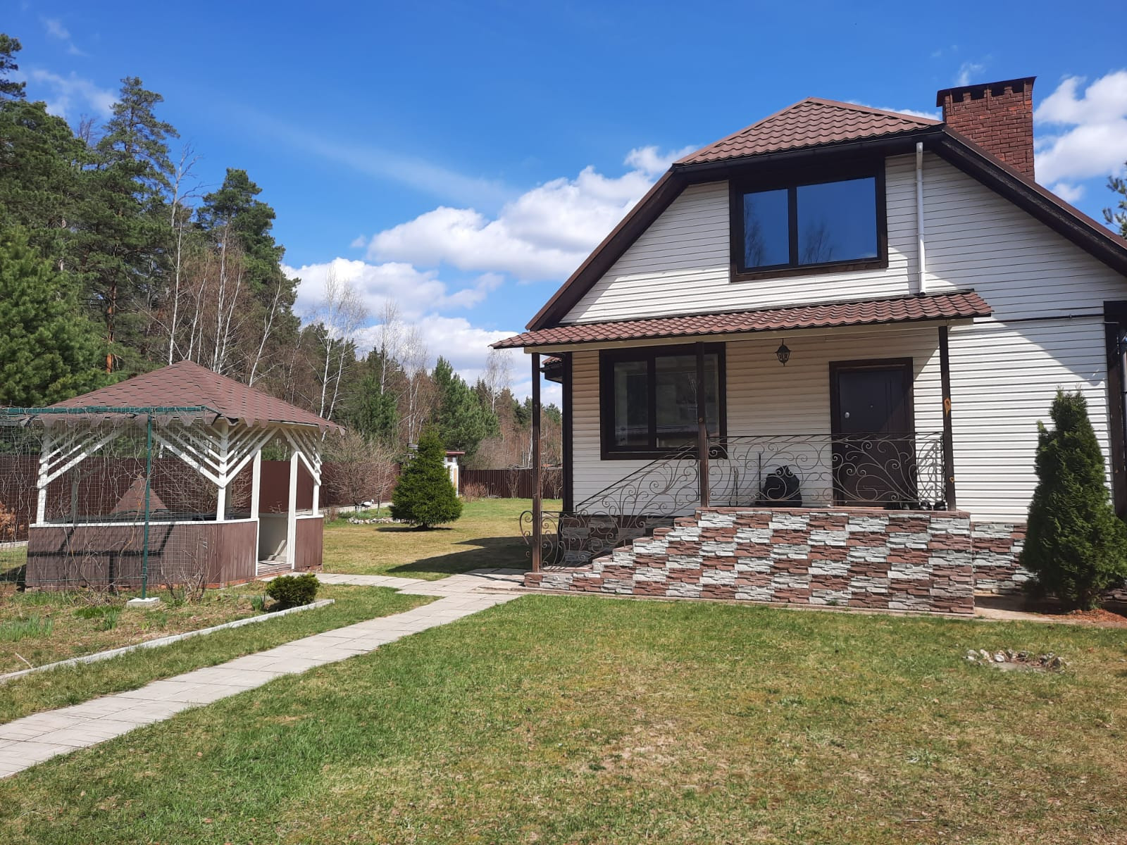 Дом расположен на ровном, сухом участке 16 соток. Участок находится рядом с лесом. Дом просторный и очень светлый. В гостиной комнате есть действующий камин для приятных вечеров. Прекрасная планировка дома подходит для большой семьи. На участке расположена баня, беседка и гараж с гостевым домиком.