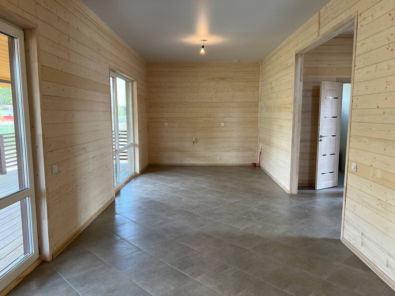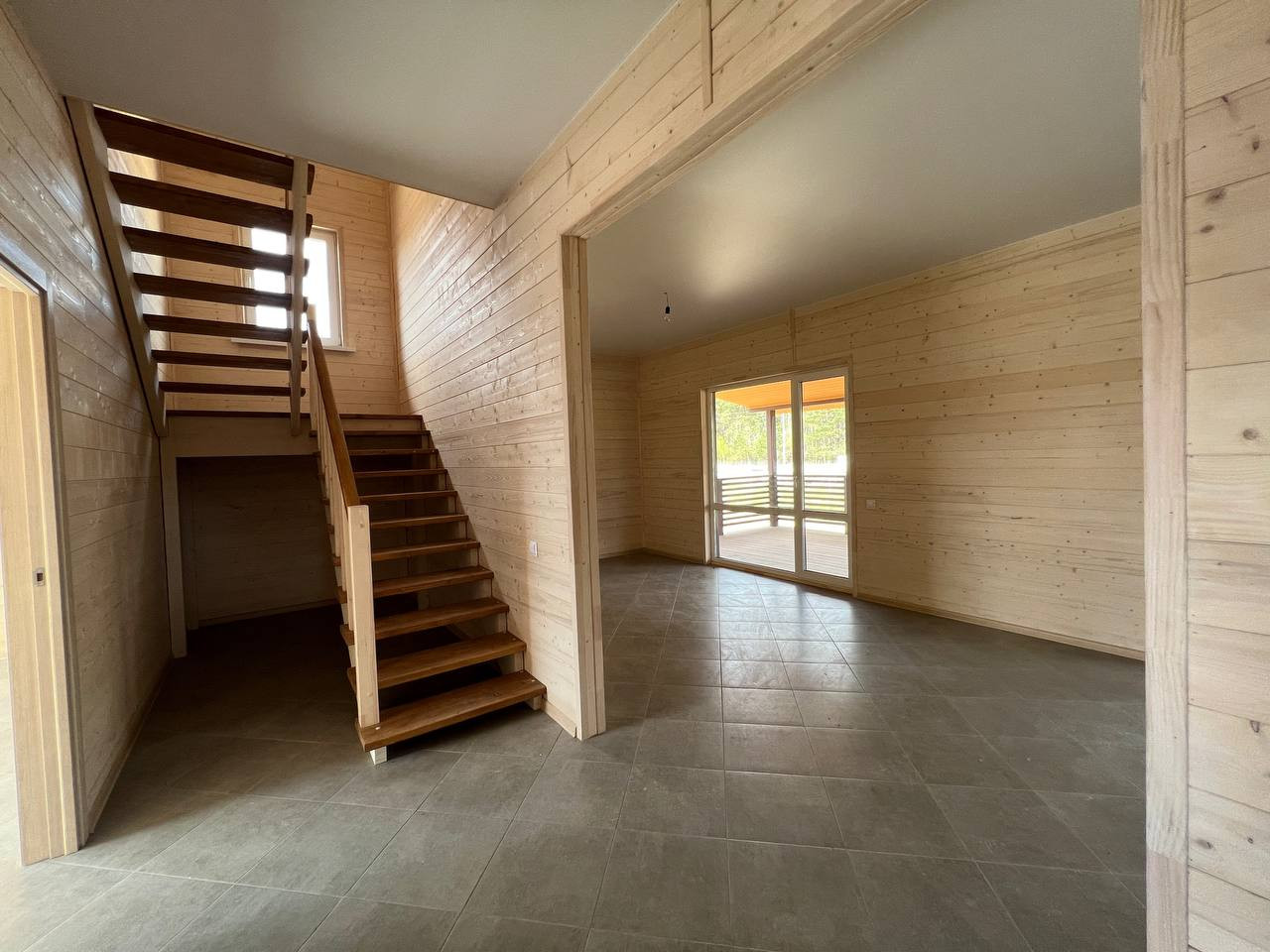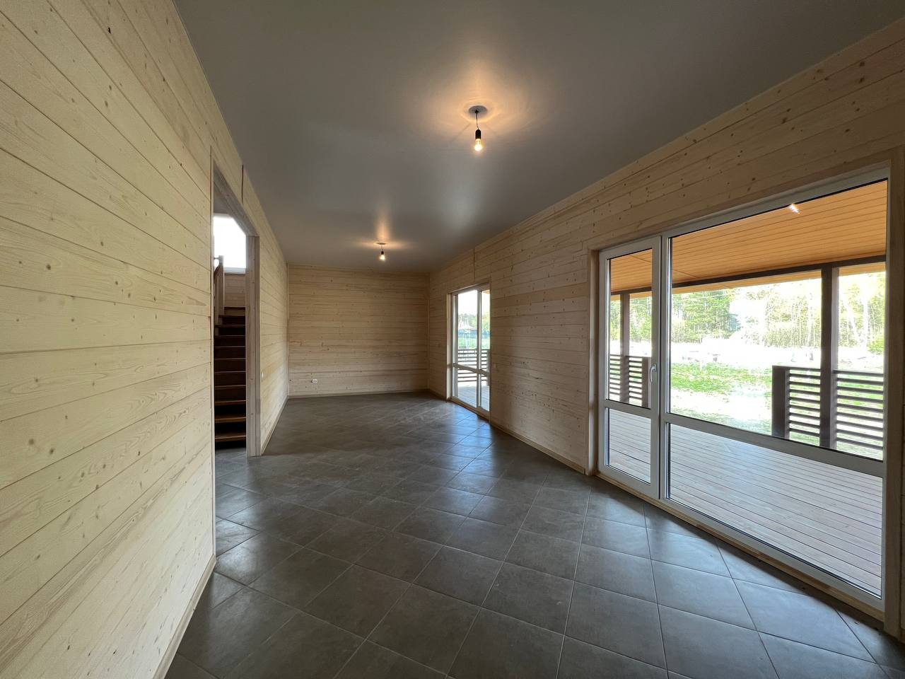 Дом с просторной кухней-гостиной, с детскими спальнями и большой летней верандой для пикника счастливой семьи.