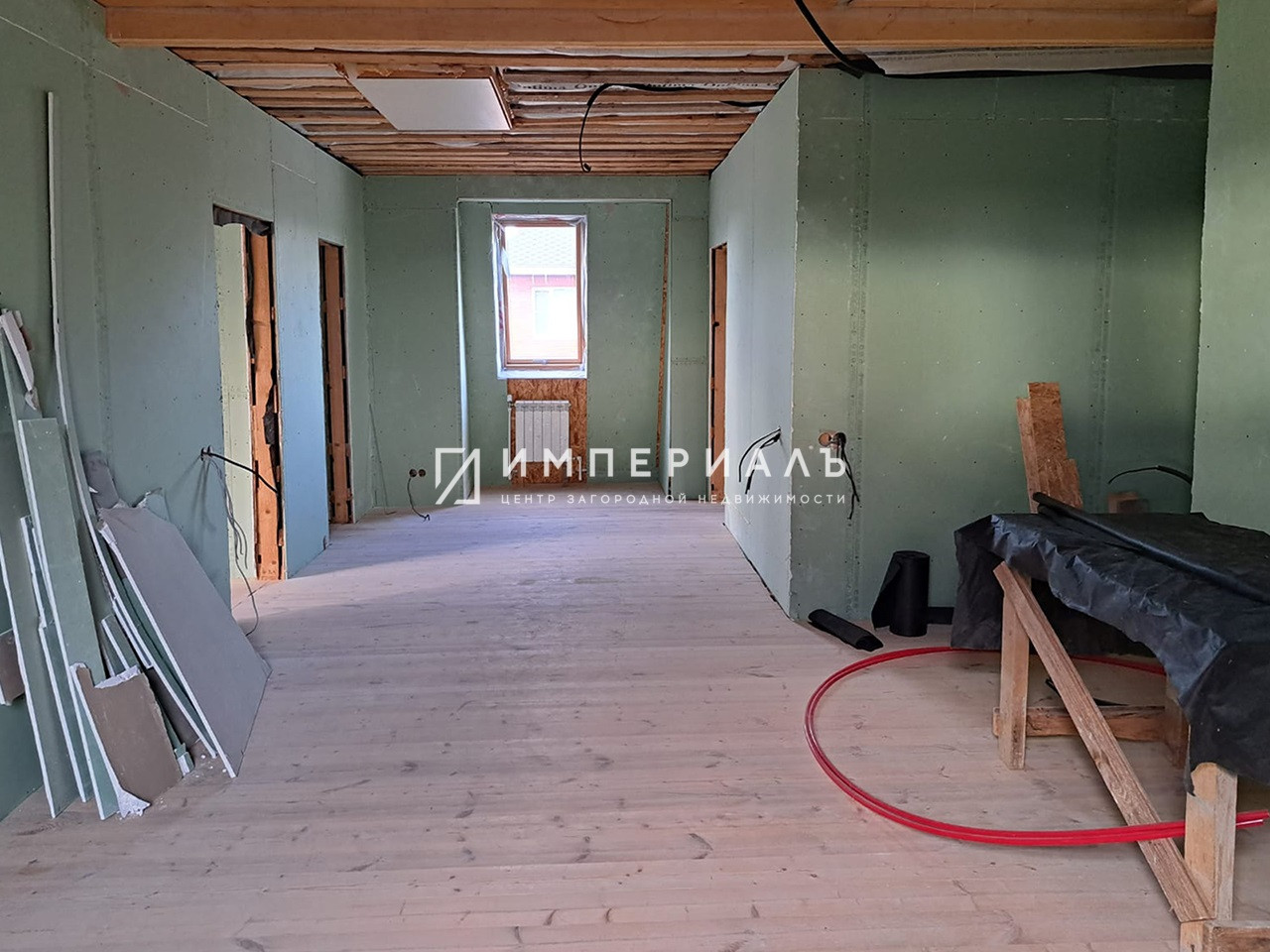 Планировка: 1 этаж-прихожая + лестница на второй этаж, проходная кухня, ванна+туалет, проходная комната, комната 1, комната 2, комната 3. 2 этаж-большой холл, ванна+туалет, большая спальня, гардеробная, спальня.
