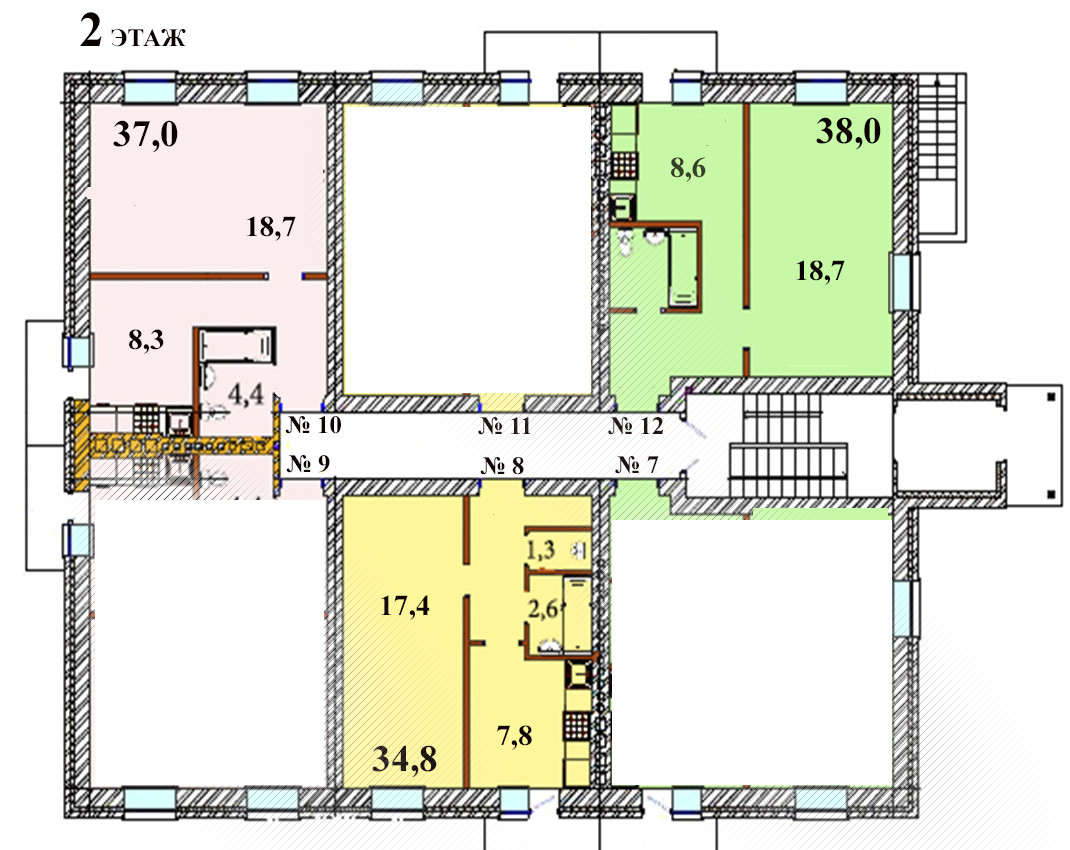 Шесть помещений от 14 до 40 кв.м.