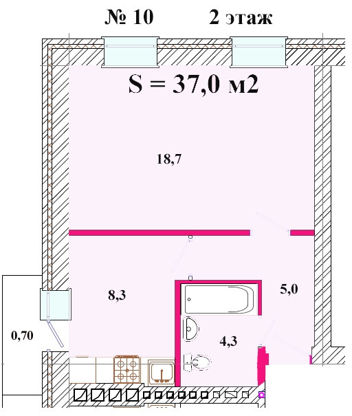 Общая площадь 37 м2