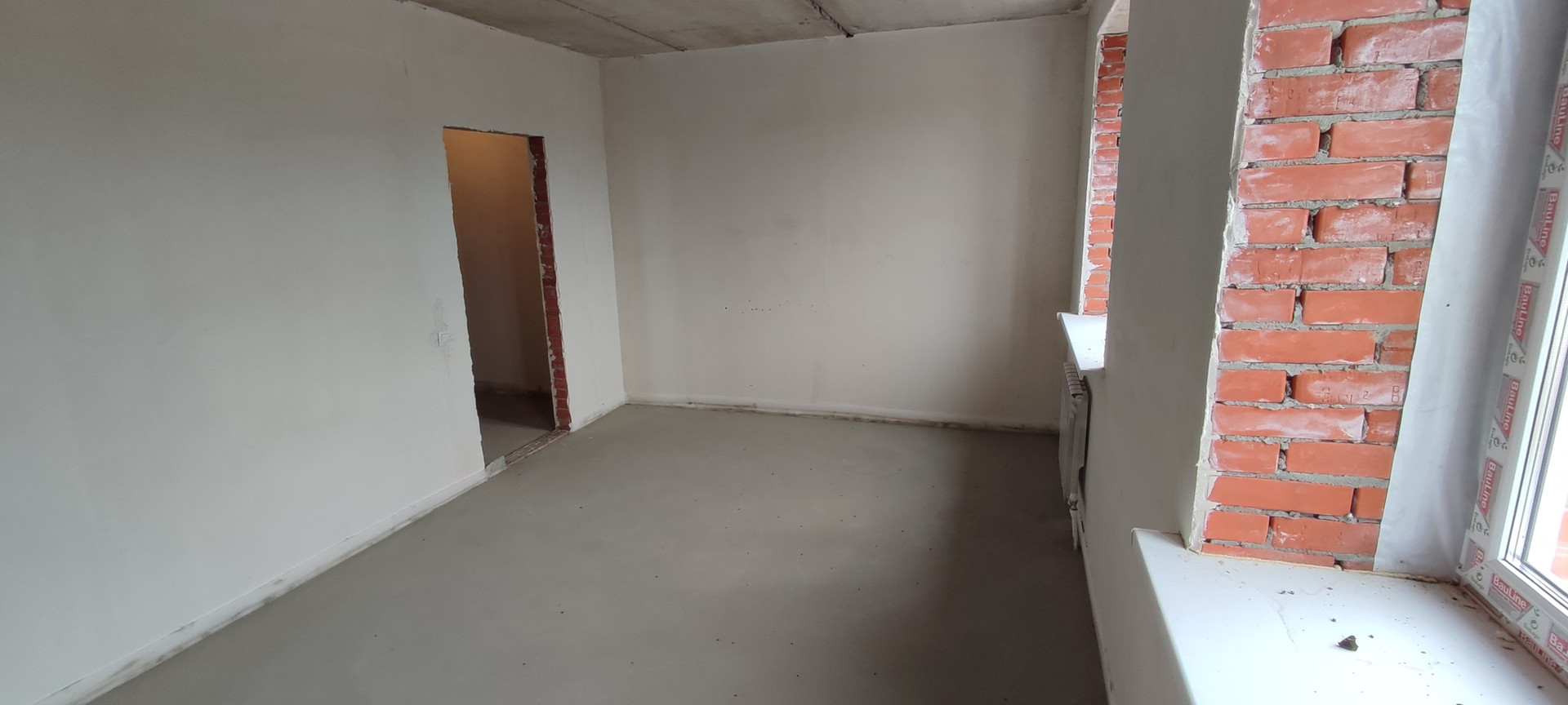 Стены оштукатурены, стяжка пола, электроснабжение. Готова к чистовой отделке.