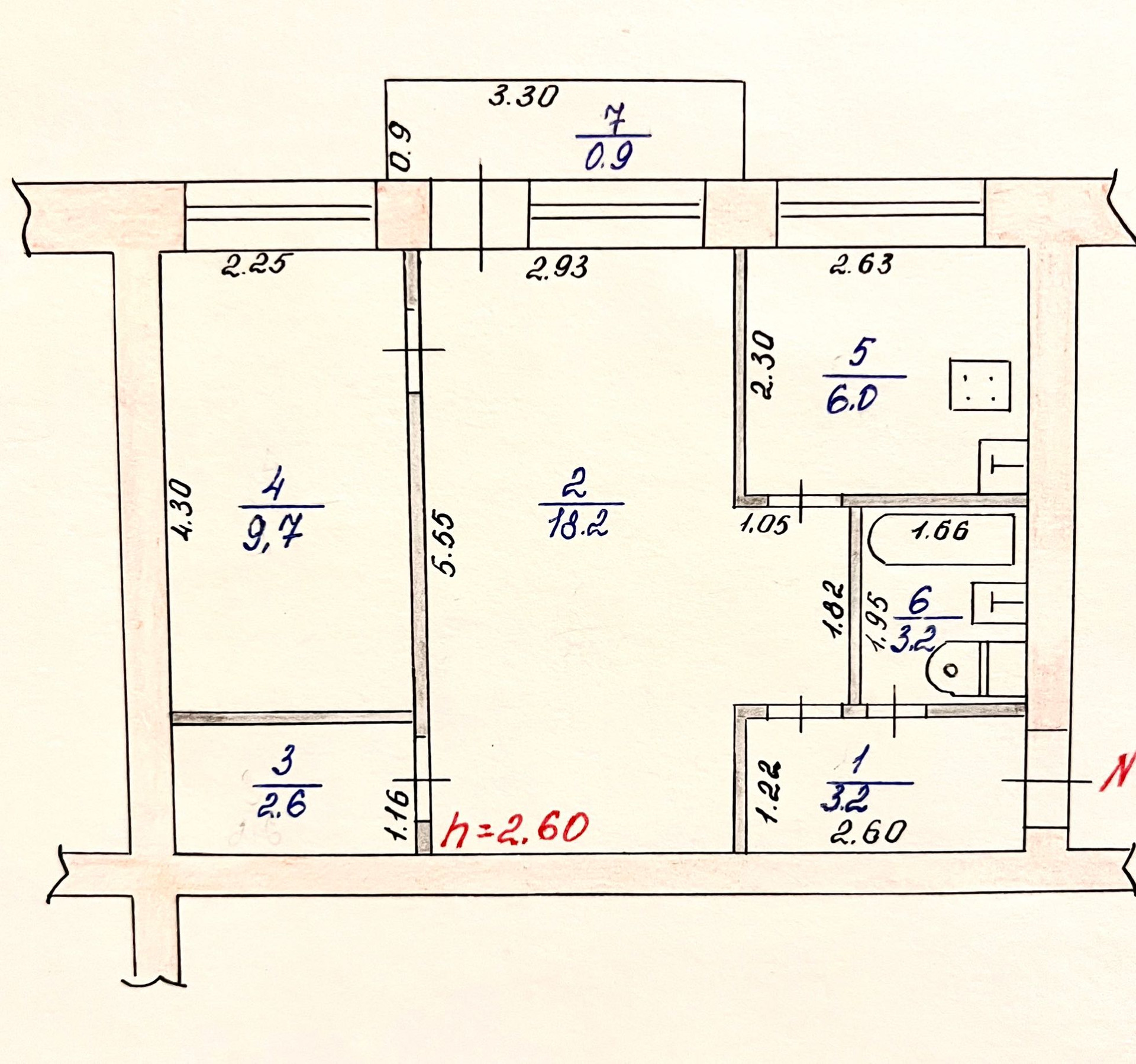 Высота потолков 2.6 м