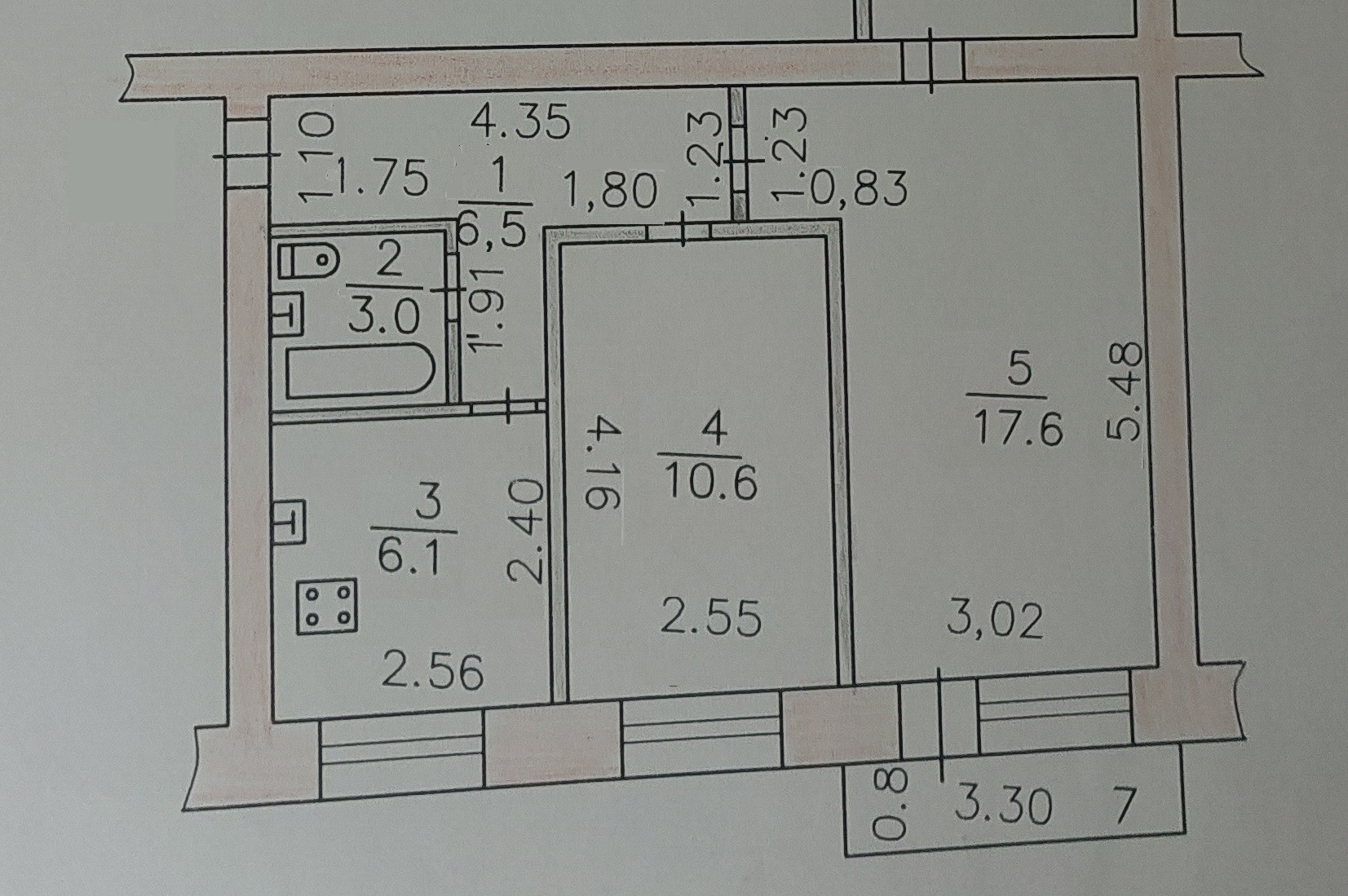Жилая площадь 39.3 м2