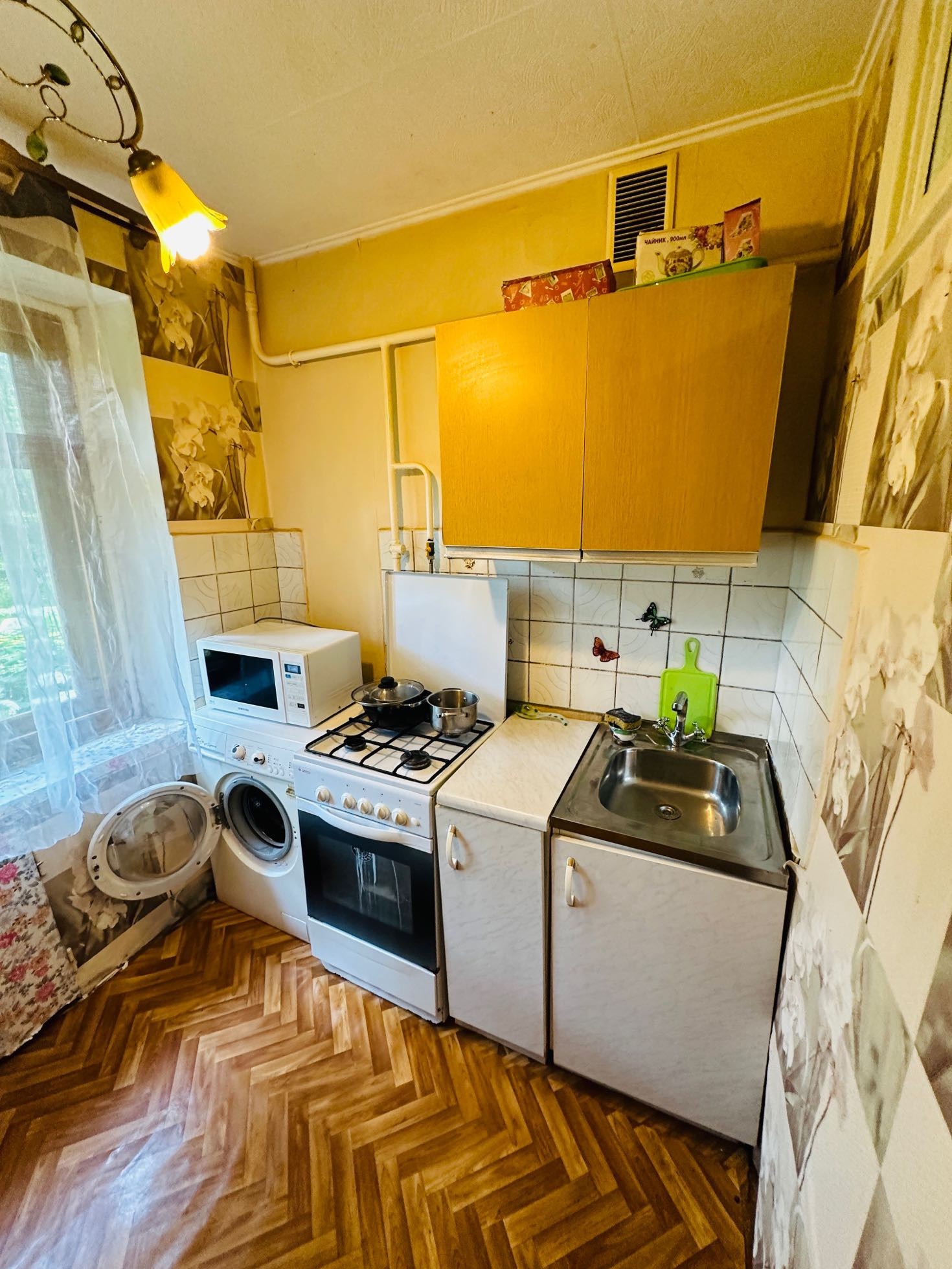 Квартира включает в себя жилую площадь 16,3 квадратных метров и функциональную кухню площадью 6 квадратных метров. Санузел раздельный. Частично остается мебель. Солнечная сторона.
