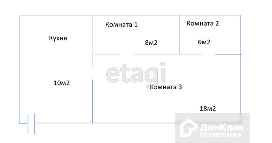 Общая площадь 51.6 м2