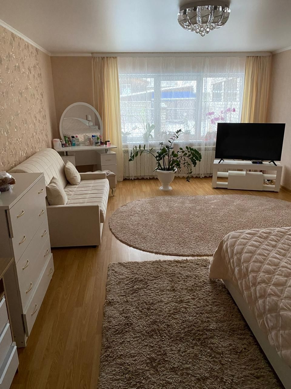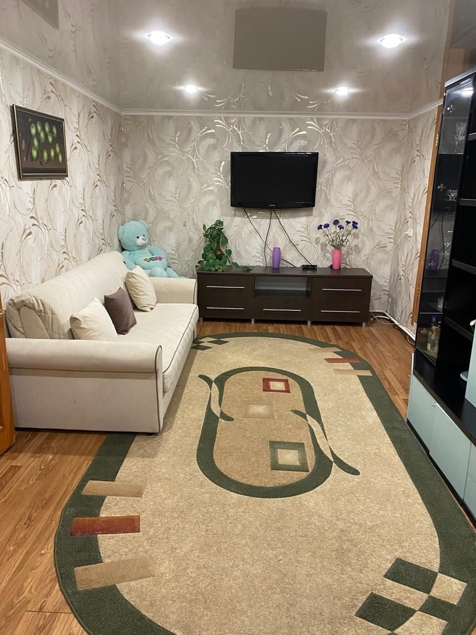 Просторная комната  6*6 м( с гардеробной).Гостиная 25 кв,кухня 17 кв.м.Продается частично с мебелью и бытовой техникой. Натяжные потолки.Полы ламинат. Кухня/ванная-плитка(теплый пол).Гостиная- теплый пол.Окна ПВХ.Новая проводка.На участке баня, сарай под одной кровлей(кровля металл.).Баня 4*4кв.м+предбанник.Баня обшита вагонкой-липа.Покупателю в подарок березовые дрова-15 куб. На участке теплица и плодово-садовые насаждения.