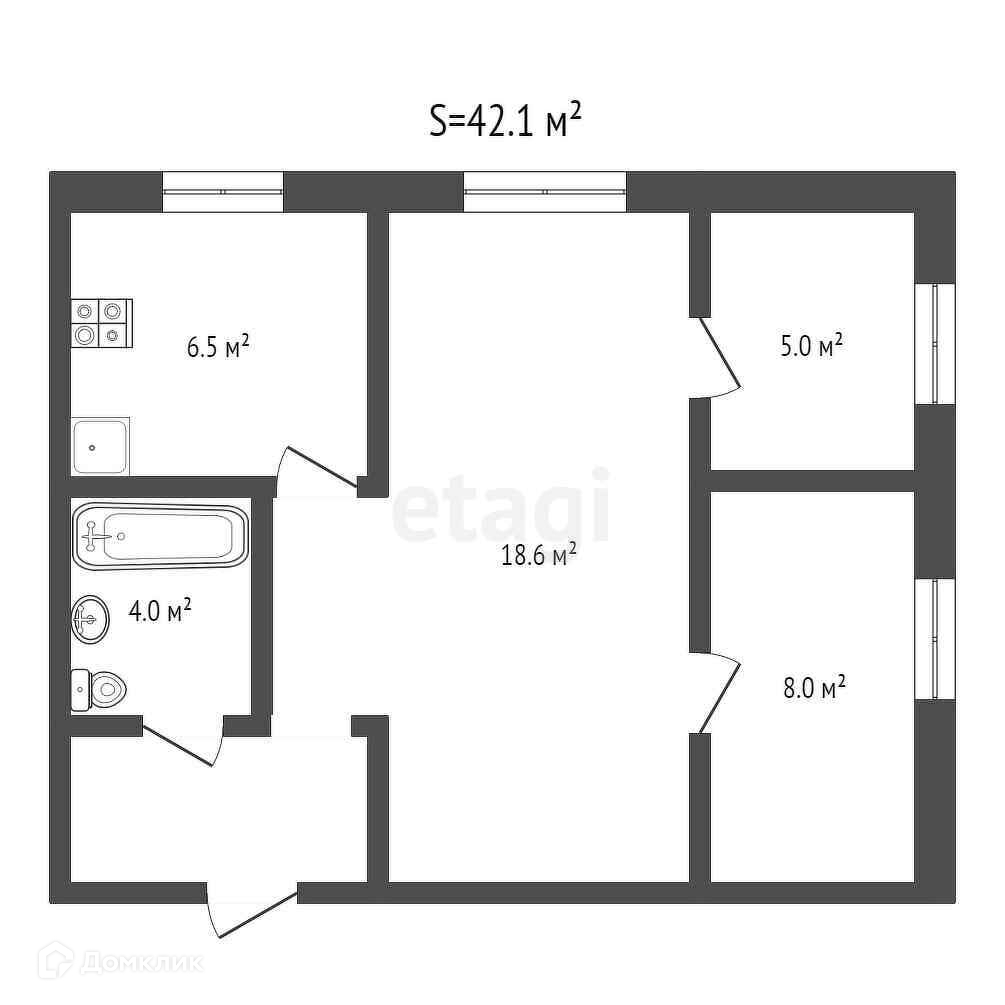 Общая площадь 42.1 м2