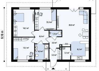 Общая площадь: 92 м2