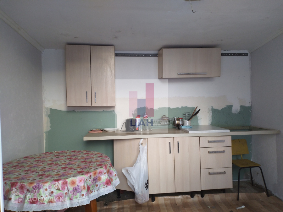 На первом этаже- кухня, с/у, комната. На втором этаже - одна комната. Полы в кухне- плитка, в комнате- ламинат. Второй этаж без отделки. Дом подходит для круглогодичного проживания.