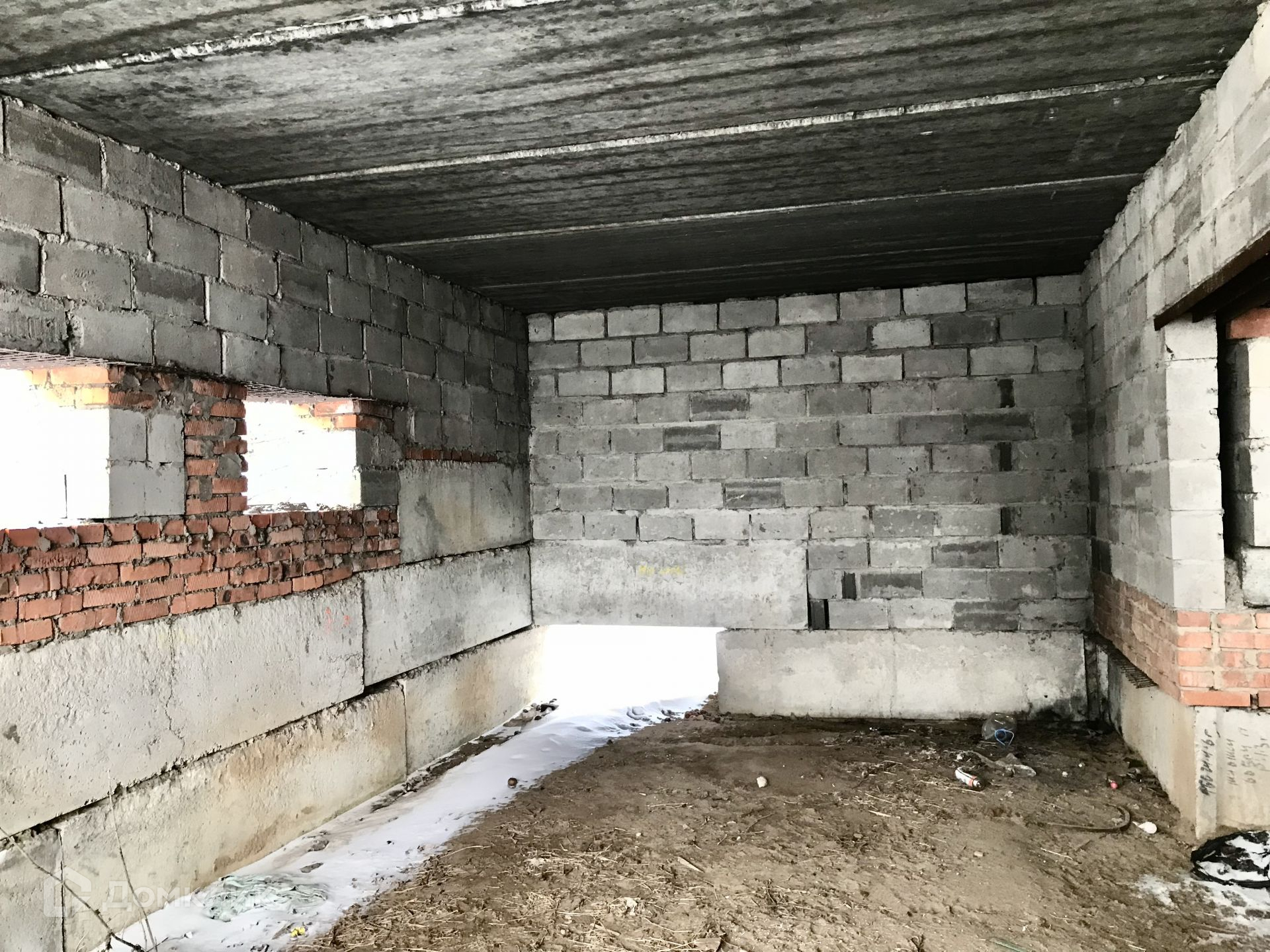 Дом выполнен из монолитного бетона с утеплением. Фундаментная плита ребристая утеплённая на буроналивных сваях. Утеплённая кровля.