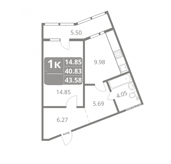 Общая площадь 41.5 м2