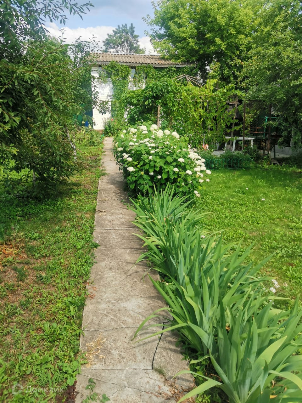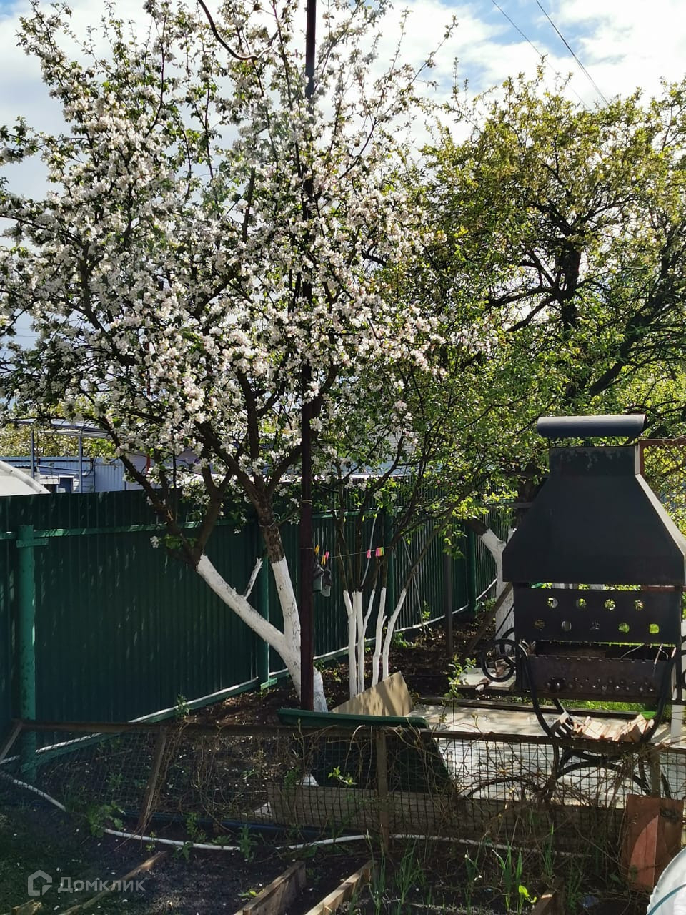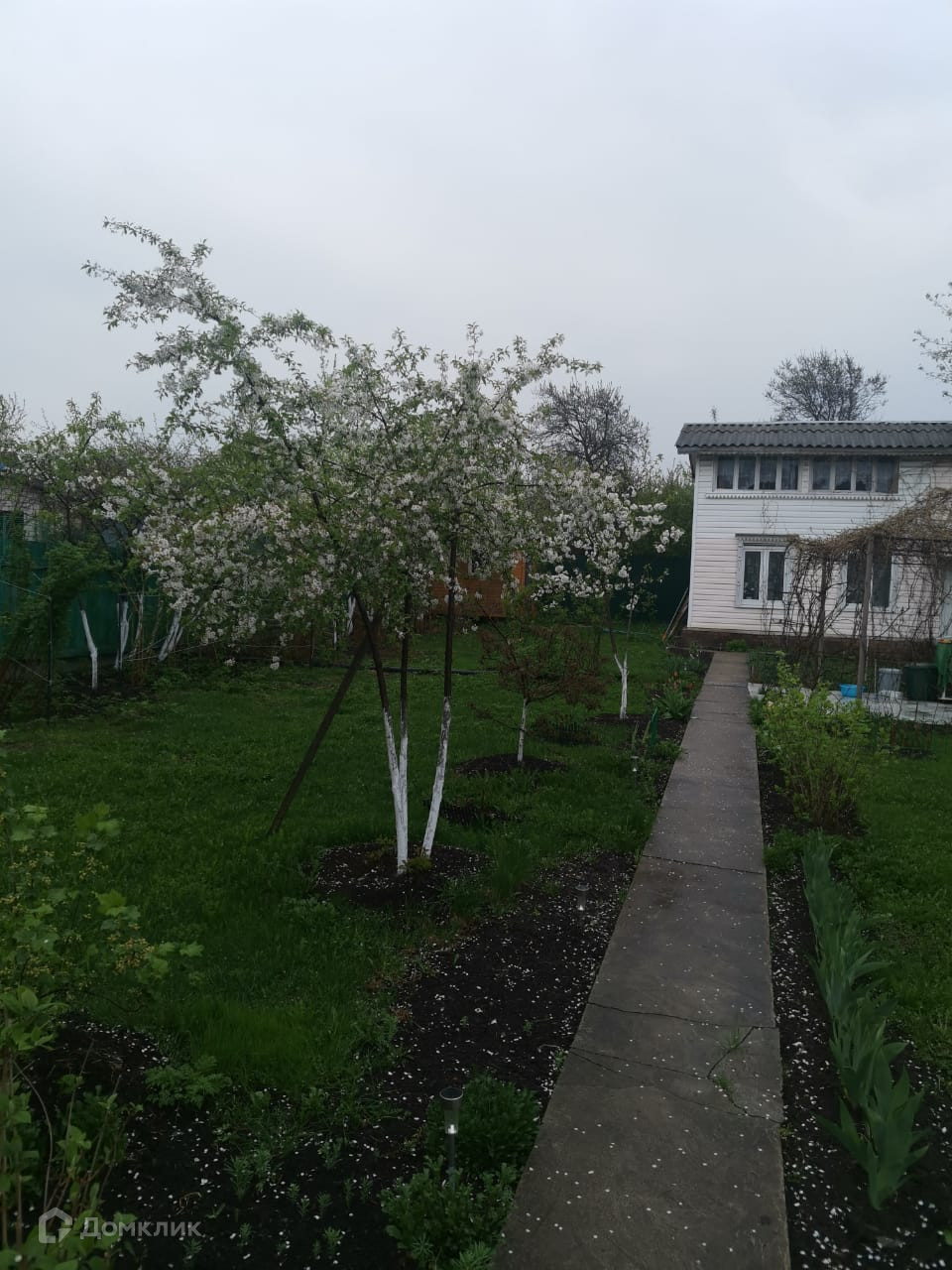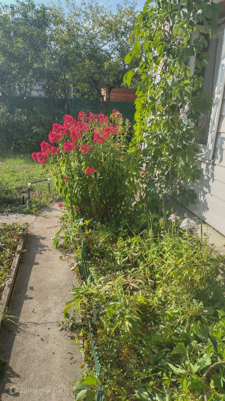 Участок разработан посажены плодовые деревья, кусты, кругом цветы.