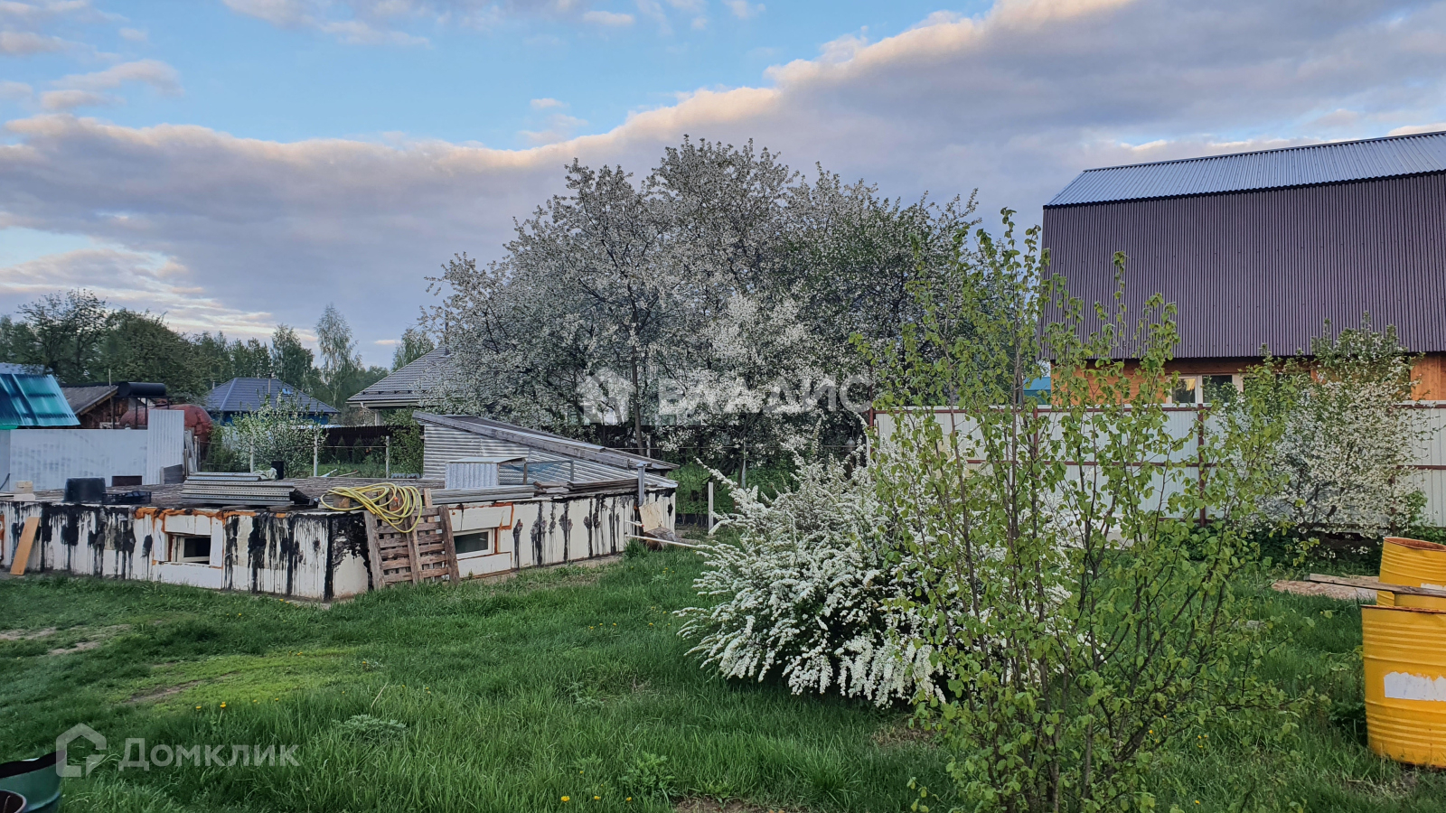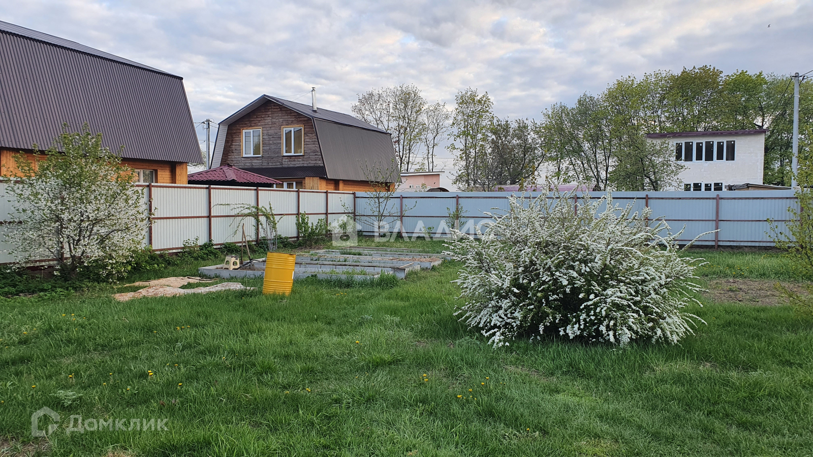На участке есть утепленная бытовка ( пригодна для круглогодичного проживания) и бетонный фундамент для будущего дома размером 7х9м. В цоколе есть  две комнаты, где можно сделать тренажерный зал, бильярдную, кинотеатр и т.д. и котельная, где стоит насос из скважины, котел для обогрева помещения и нагрева воды . На участке растут плодовые деревья и кустарники. Земля оформлена в собственность. Можно достроить дом, прописаться и жить на ПМЖ, как  сделали это дружелюбные соседи. Прекрасное место для проживания и летнего отдыха.