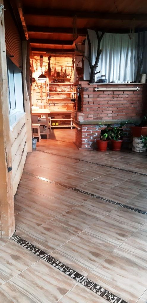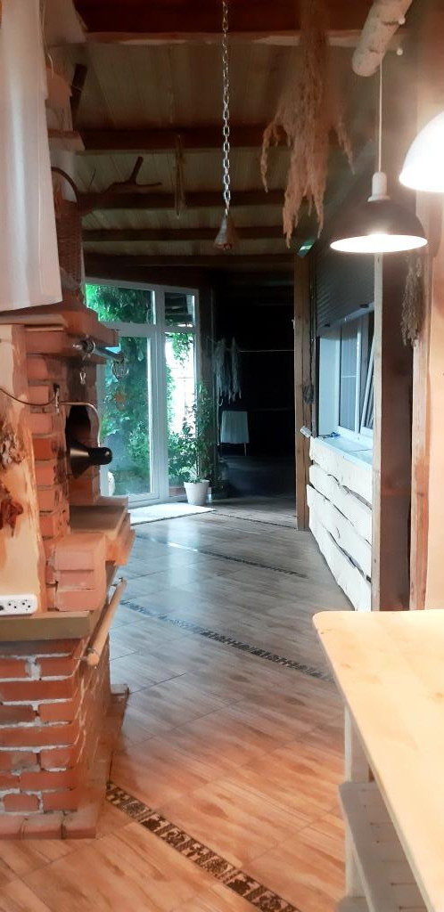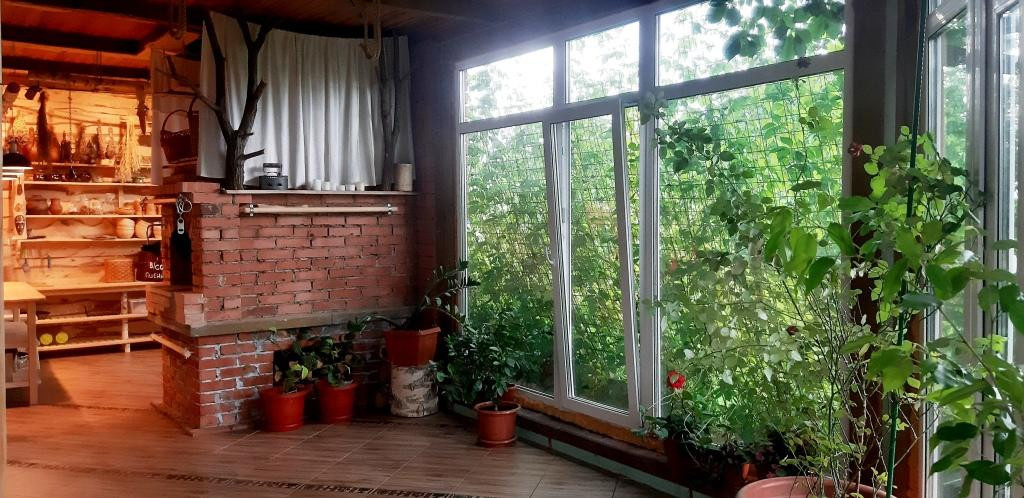 Веранда с панорамными окнами и тёплым полом ,где оборудована русская печь всегда свежий домашний хлеб и различная еда в печи ,прекрасное место для встречи с гостями.