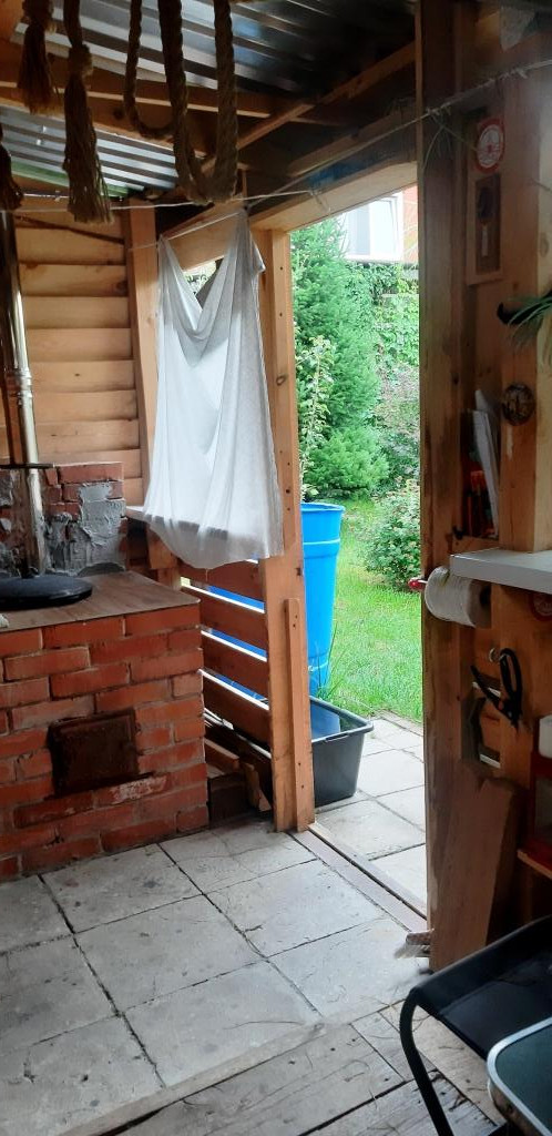 Стоит беседка –дровяник , мангальная зона