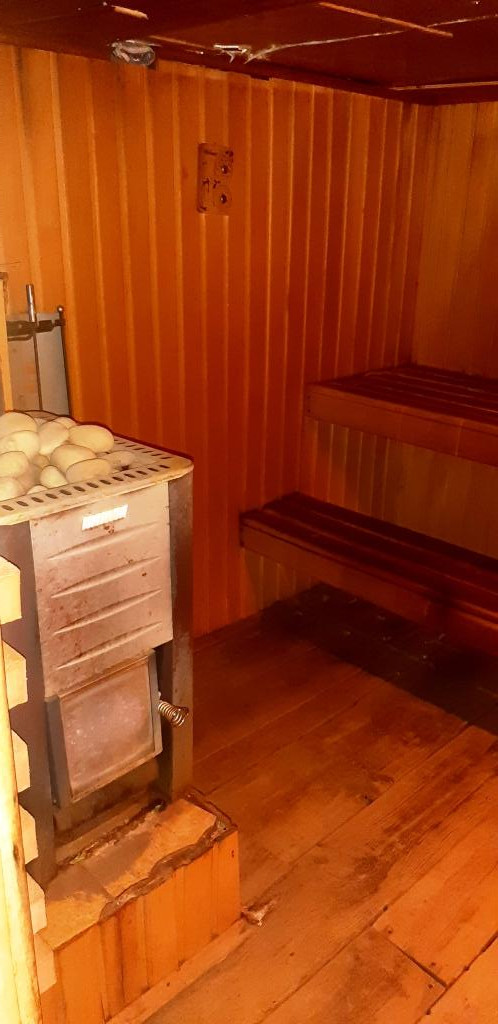 В доме имеется классная баня на дровах, бассейн