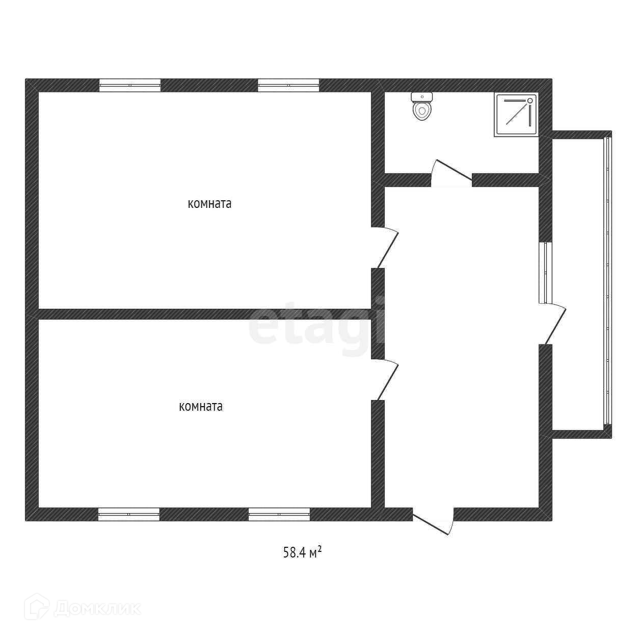 Общая площадь 58.4 м2