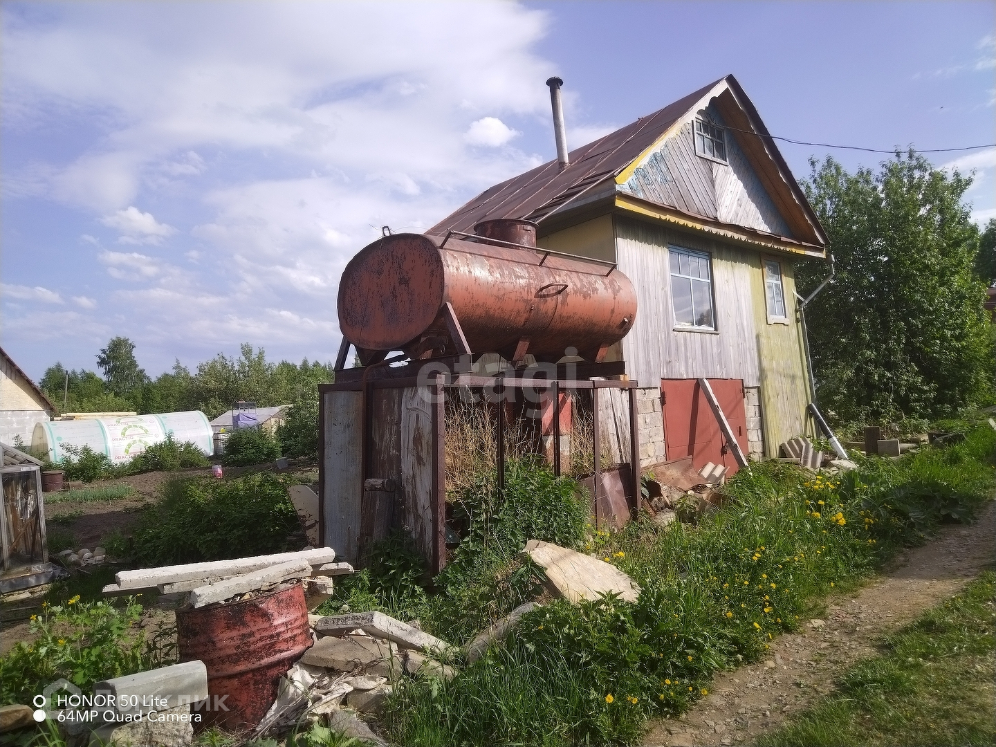 Дача требует ремонта. На участке имеются ёмкости для воды, теплицы, плодово-ягодные насаждения.., грядки обрабатывались постоянно, кроме этой весны.